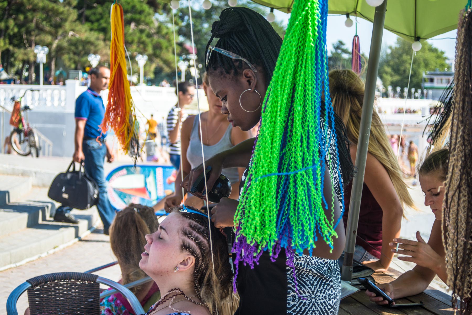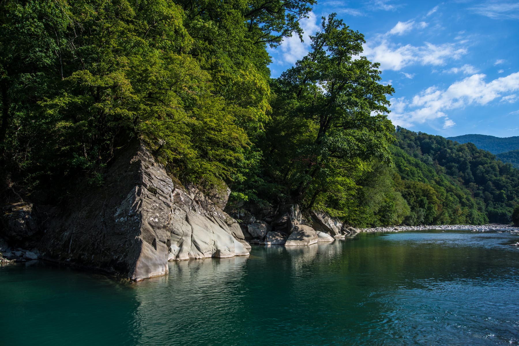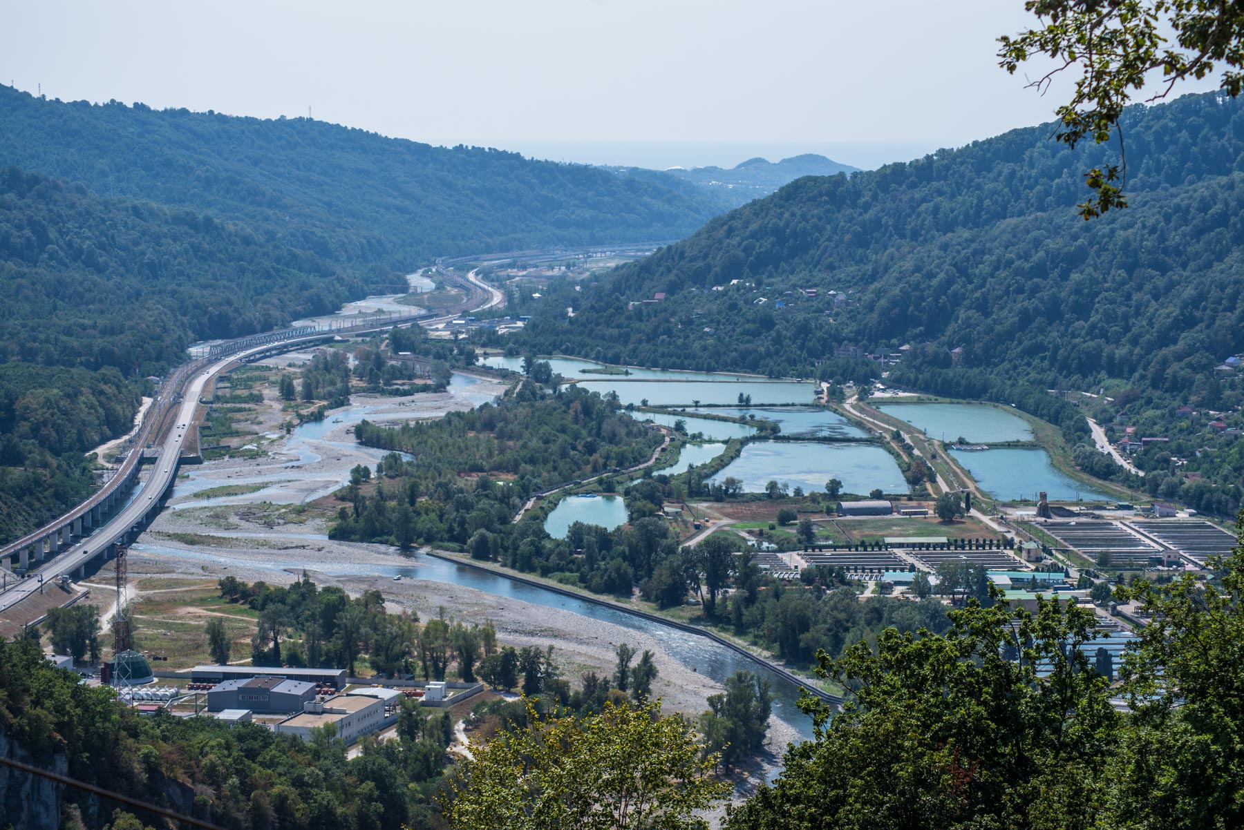 Следующий день обещал быть непохожим на предыдущие. Во-первых, мы должны были ночевать на базе отдыха в горах, а во-вторых, наконец заняться чем-то активным, а не только любоваться архитектурой и пейзажами. Этим активным стал джиппинг. 5 машин, 30 человек, громкая музыка, большие колеса. Из поселка Солоники, в котором мы остановились, водители провезли нас через Лазаревское, пересекли аул Тхагапш и по небольшому отрезку бездорожья довезли до водопада Игристый. Дальше по плану – купание в лазурного цвета реке Псезуапсе. Вот тут-то и случилась неожиданность. Всех водителей внедорожников, кто проехал через русло реки, тут же остановили ребята из природнадзора. Ездить по реке нельзя, оказывается. Водитель позднее рассказал, что отделались предупреждением. Также он поделился, что проверяющих натравил на наш экипаж арендатор водопада Водолей, мимо которого мы проехали, не дав тому поднять деньжат на несколько тысяч рублей. Вот такая месть по-сочински.