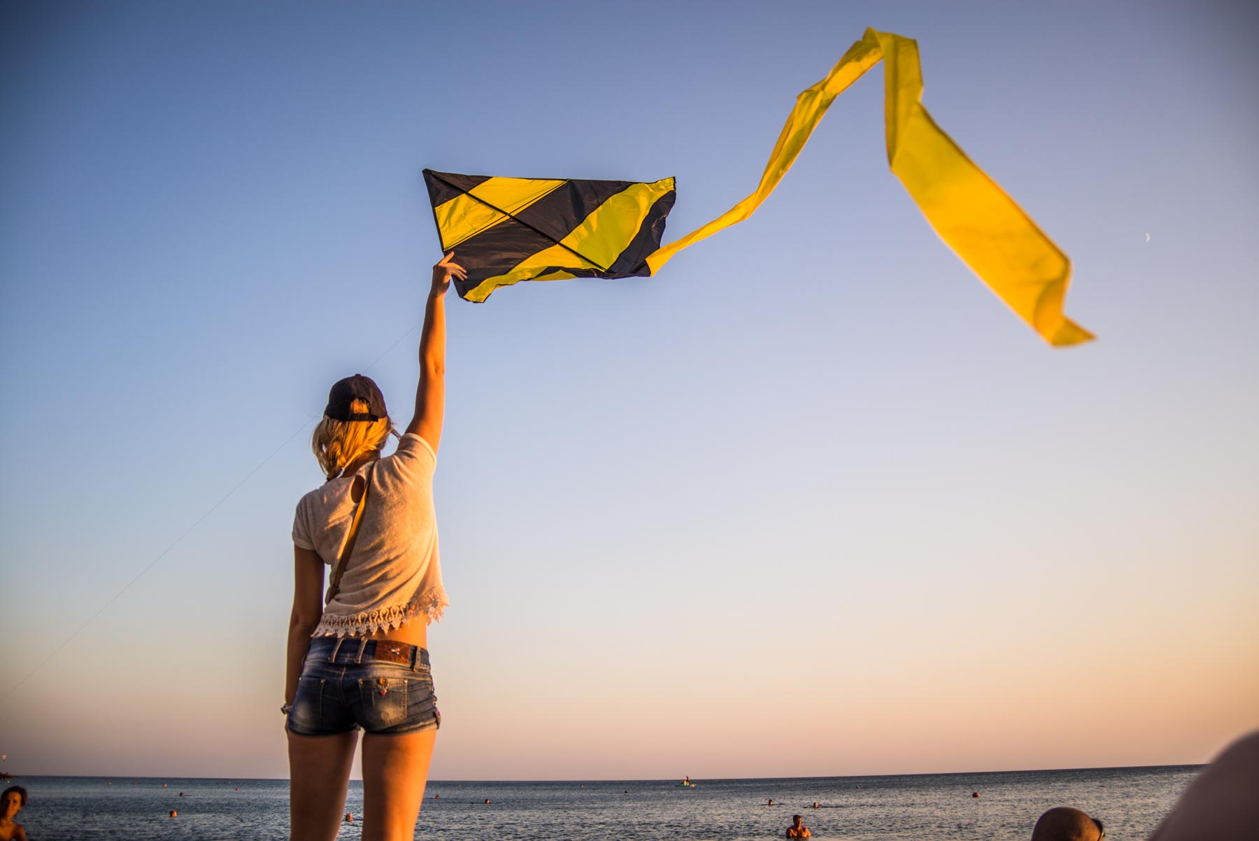 Непредвиденная ситуация ожидала нас даже в таком богом забытом месте, как пляж поселка Прасковеевка, который славится необычной скалой в форме паруса. Именно к этой скале мы держали путь, но планы наши нарушили полицейские, которые дежурили возле окончания центрального пляжа и начала дикого берега, по которому нам предстояло идти к скале. Запрет на проход сотрудники объяснили тем, что неделю назад в районе горел лес, а расследование еще до сих пор ведется. Полюбовавшись скалой издалека, мы искупались в море, запустили воздушного змея и отправились дальше.