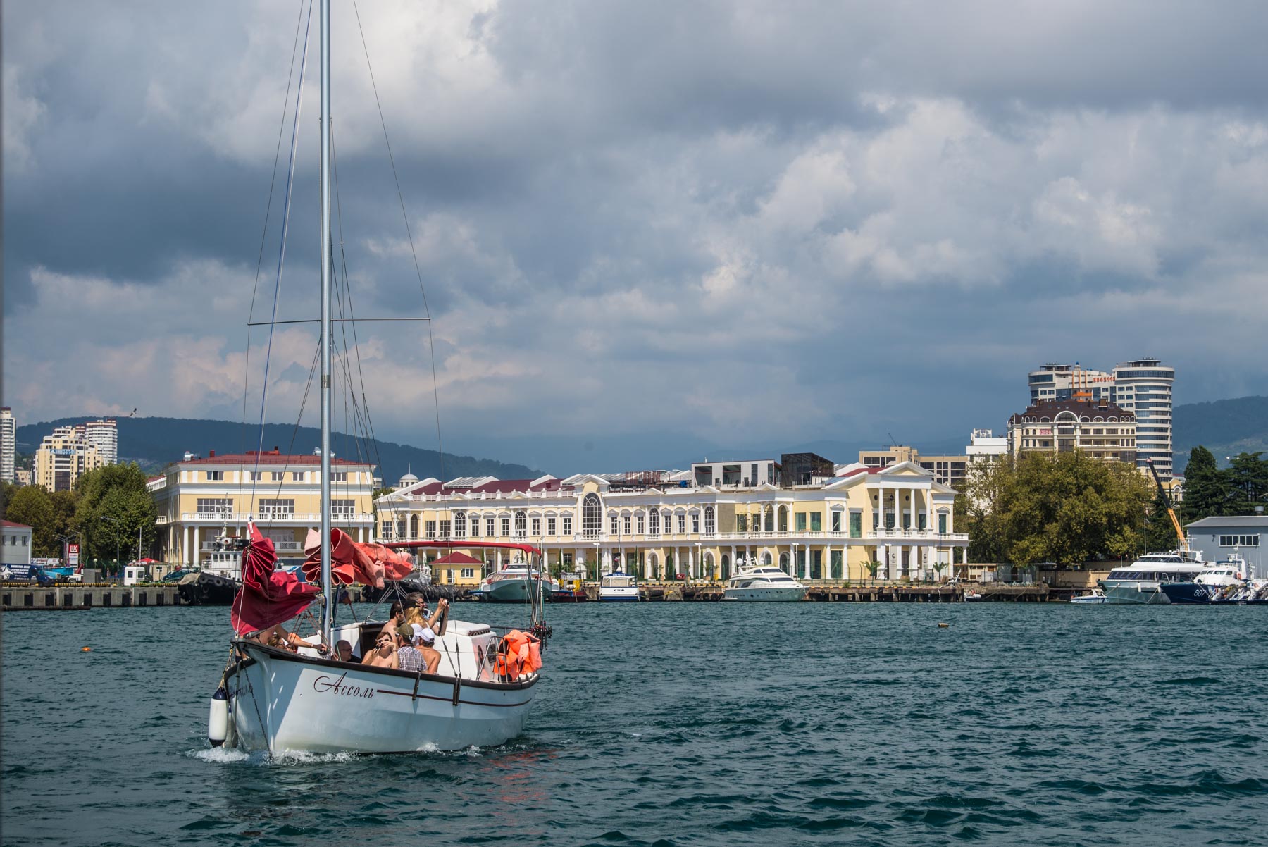 На следующий день нас ждала неожиданность, которая едва не переросла в катастрофу. Попрощавшись с уютной базой отдыха в Солониках, мы на электричке (чтобы не попасть в пробки и избавить себя от серпантина) отправились в Сочи. Здесь нас ждало катание на яхте. Получив три судна в полное распоряжение на час, мы снялись с якоря. Две яхты, как яхты, а вот третья явно носит название “Беда”. Не успели мы выйти в открытое море из бухты, как в отношениях капитана и юнги почувствовался разлад. Юнга явно не знал, как обращаться с парусом, а капитан это знал, но зато пребывал в плохой осведомленности о техническом состоянии судна. Короче, двигатель отказал и лодка начала неконтролируемо болтаться по бухте, постепенно приближаясь к волнорезу. Тому самому, на котором находится красный маяк. Пассажиры бы не паниковали, если бы контроль над эмоциями не стал терять капитан. Он постоянно орал кому-то в рацию, чтоб прислали катер, да поскорее, потому что до наброски на волнорез осталось всего несколько десятков метров. В итоге лодку спасли, но осадочек, как говорится, остался.