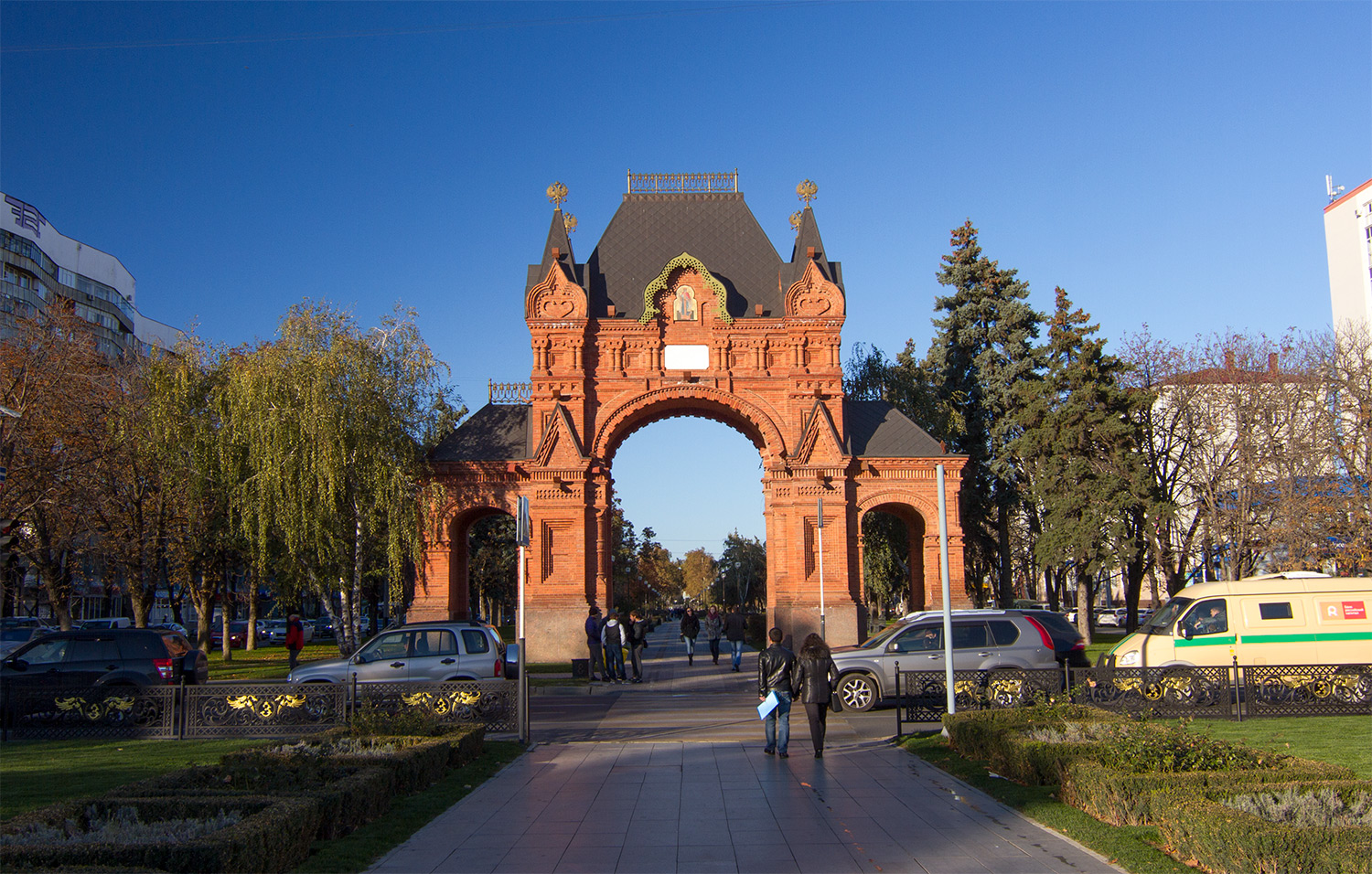 В настоящий момент, арка стоит в центре города, на пересечении улиц Красной и Бабушкина, тут же разбит сквер. Триумфальная арка является популярным местом у свадебных кортежей – пройтись под ней считается добрым знаком перед началом семейной жизни.