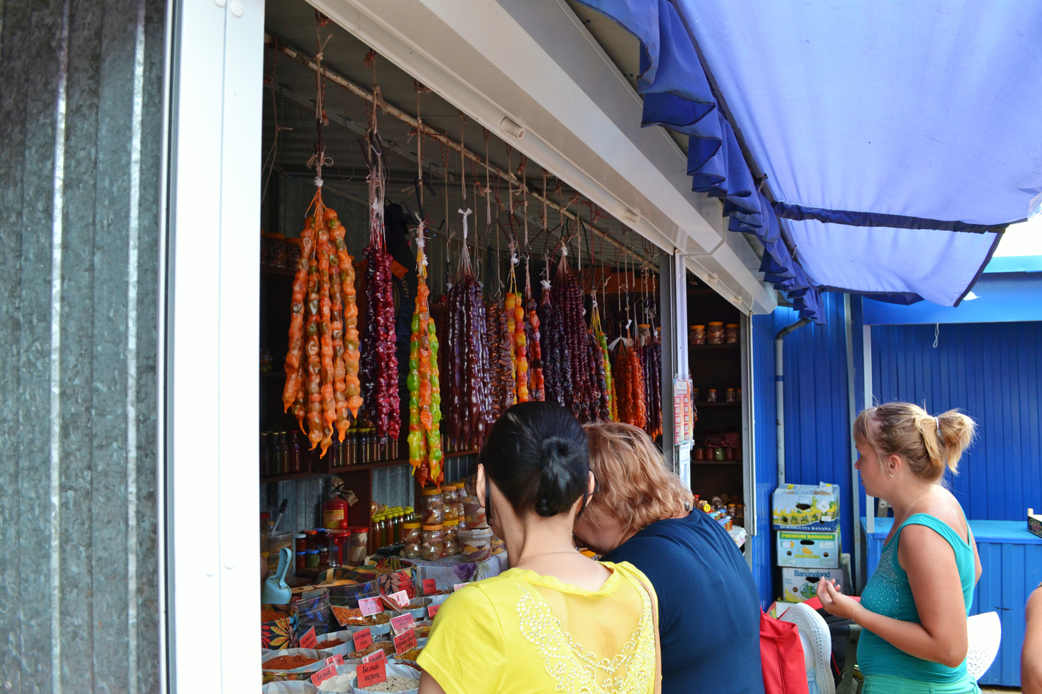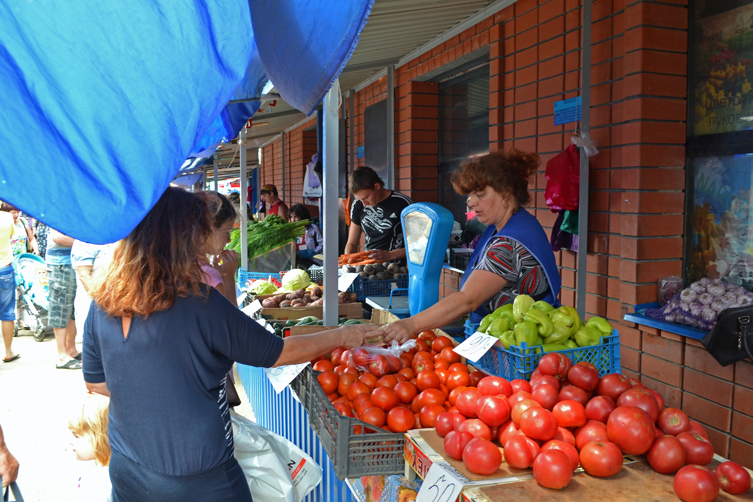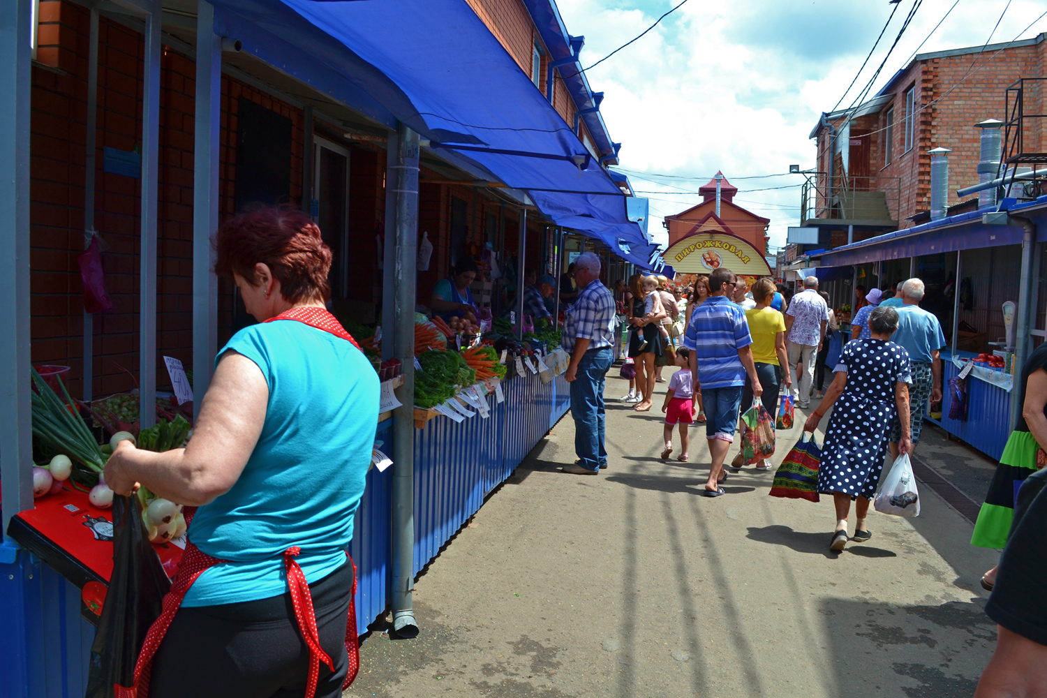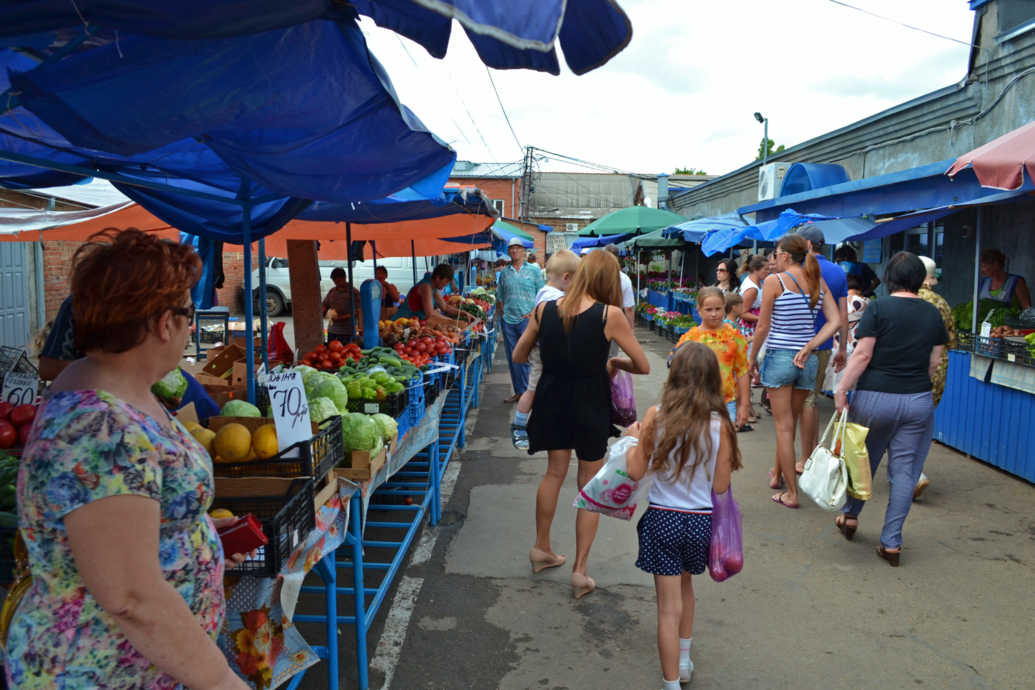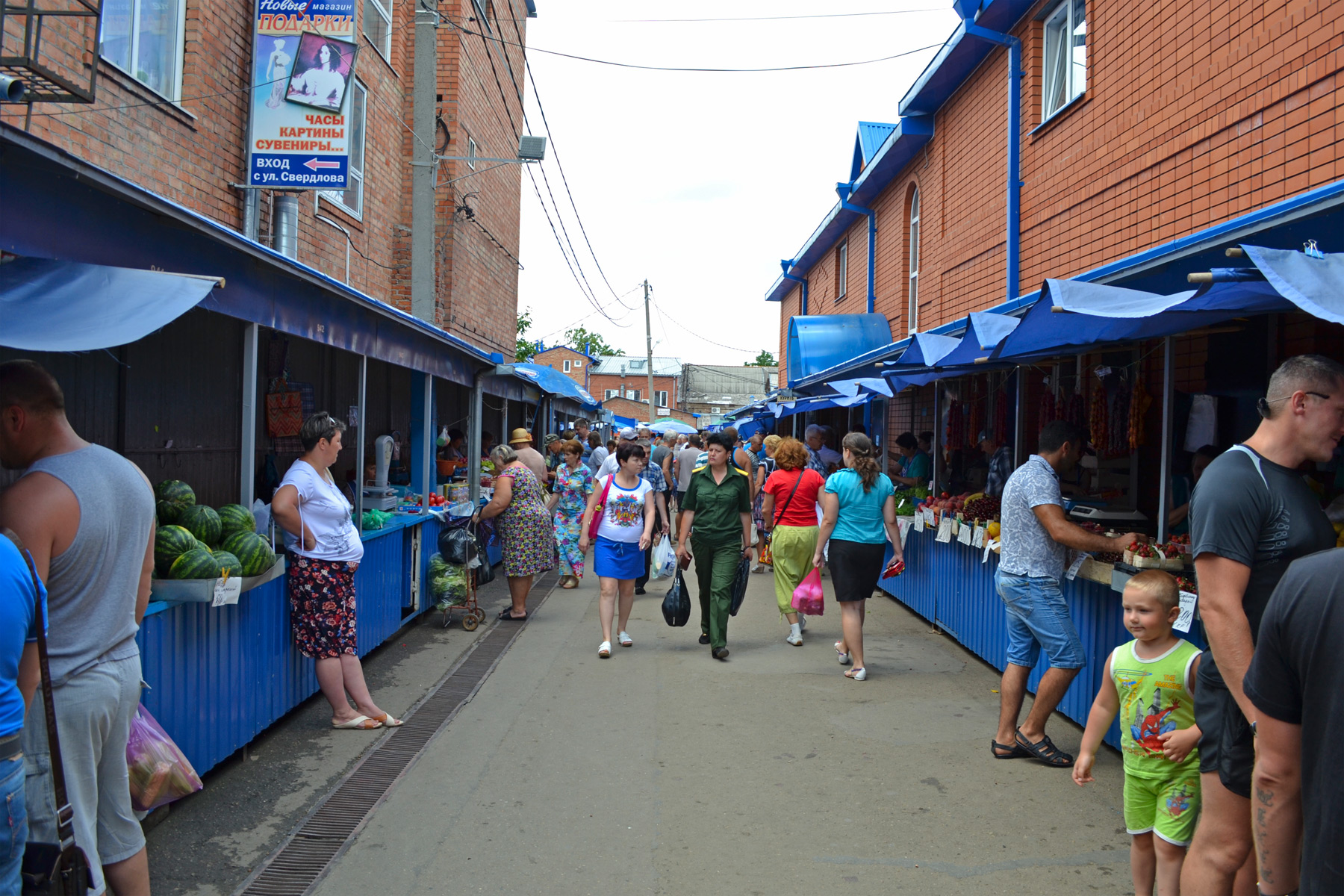 Ейский рынок довольно компактный. Перед вами по левую и правую сторону расстилаются красочные прилавки. Центральный проход забит людьми. В основном это приезжие, их легко можно выделить по ряду признаков: