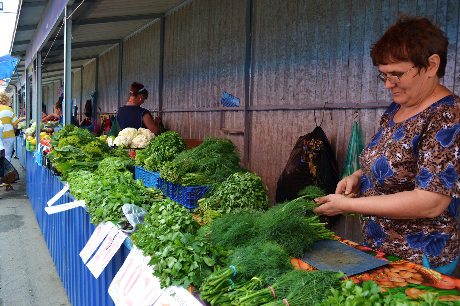 Да, что касается самого товара. Продавцы уверяют – все домашнее, родное и т.д. Действительно, все что уже растет, идет на рынок с Ейских грядок, что не поспело – привозится из края (Староминская, Каневская, Славянск-на-Кубани). Моя мама подтверждает их слова.