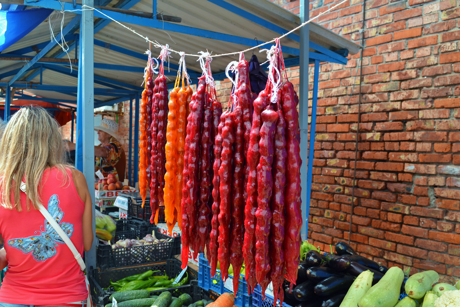 Ну и конечно же сам Ейский, родной колорит. Громкая кубанская речь и смех, толкучка, торги с покупателями. Улыбки смуглых продавщиц и живые лица. Овощи и фрукты укладывают тебе в пакетик немытые, смуглые руки. Это просто супер! Руки эти грубые в большинстве своем. У некоторых женщин нежные, но не слишком. Так и хочется за всех подержаться и понюхать!