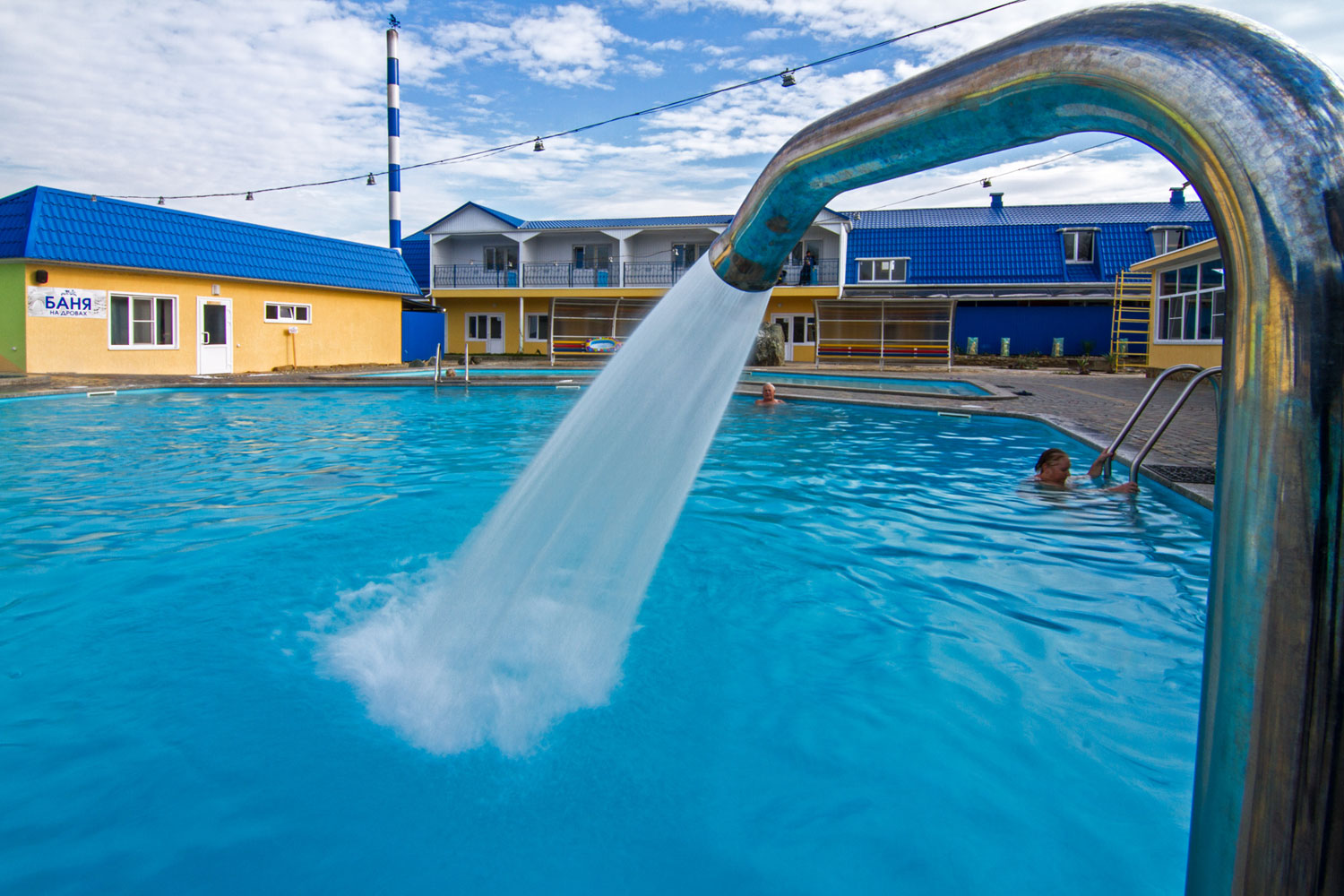 Термальные источники в поселке городского типа Мостовской. На данной базе отдыха находится 6 бассейнов разного размера.