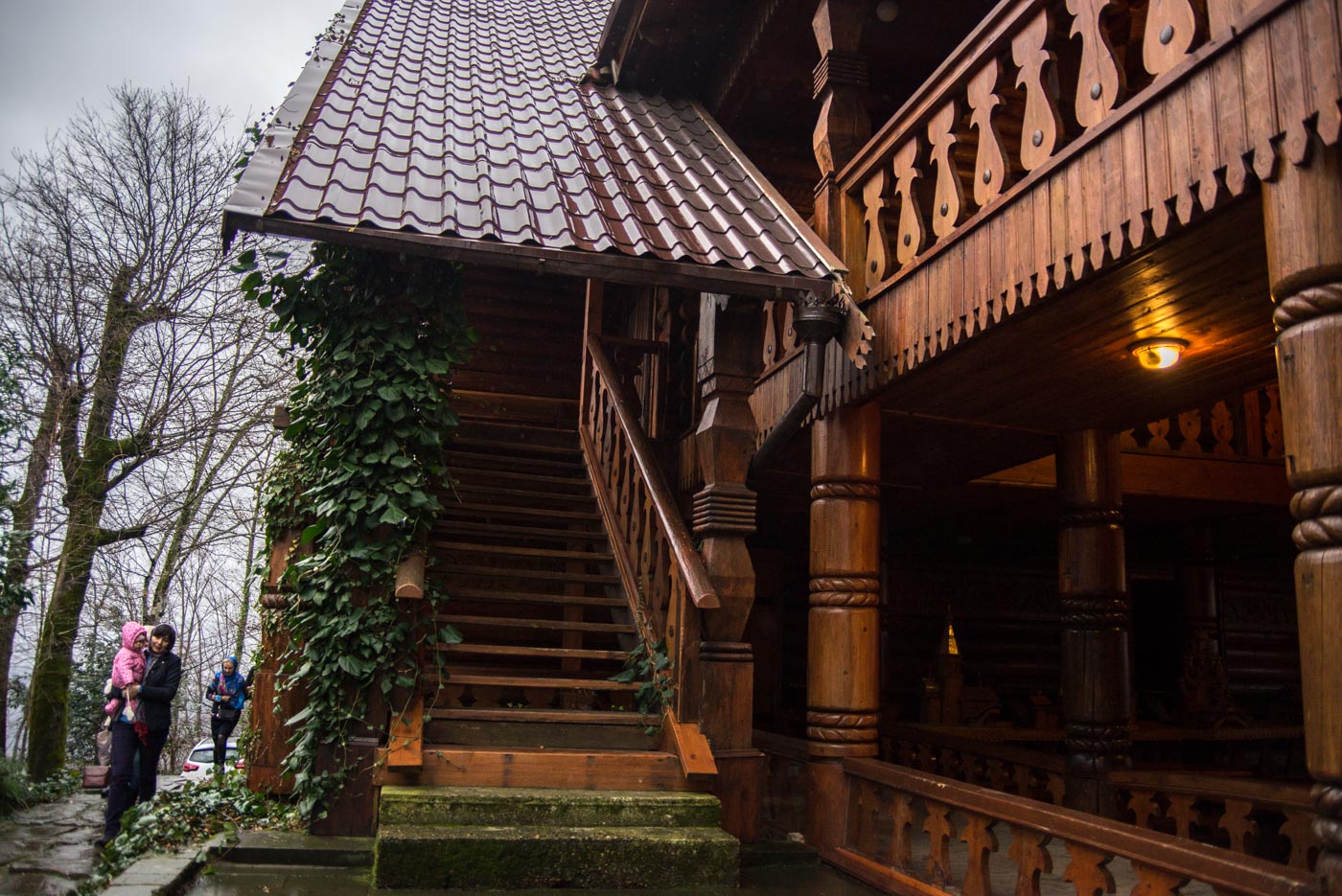 Как же нам тоже хотелось попить чаю в этом сказочном деревянном домике, но нам не повезло 🙁 Мы приехали туда на машине, а все было закрыто. Так что мы походили вокруг этого деревянного терема, поиграли с местными собачками и уехали. Надеюсь нам повезет в следующий раз, потому что расписания работы мы так нигде и не нашли.