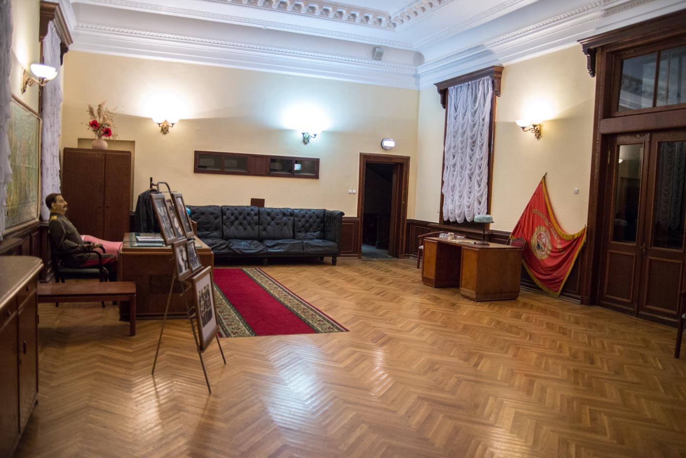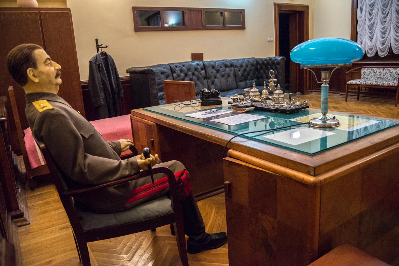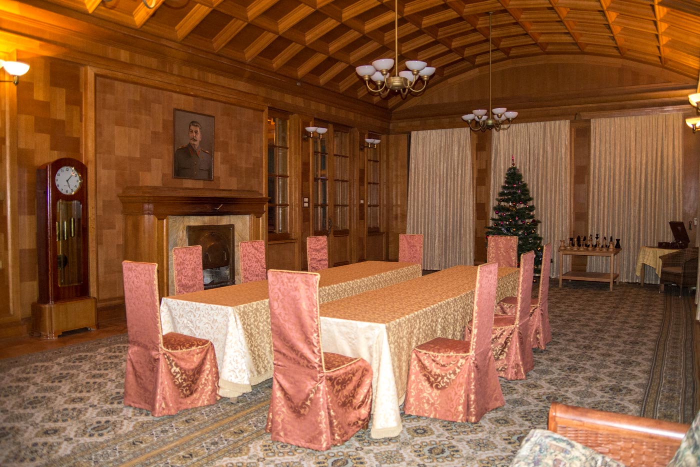 Тут Сталин бывал часто и с удовольствием, и именно поэтому она полностью функционирует до сих пор. По всей даче, внутри и снаружи, можно совершать променады, трапезничать в столовой генсека, жить в гостевых номерах высших чинов того времени, и, в конце концов, сыграть в его личные шахматы или на бильярде. Потрогать руками нельзя разве что экспонаты в музее Сталина, располагающемся в комнате кинозала – там, исключительно для обозрения, выставлены личные вещи и, собственно, Он Сам, отлитый в воске.