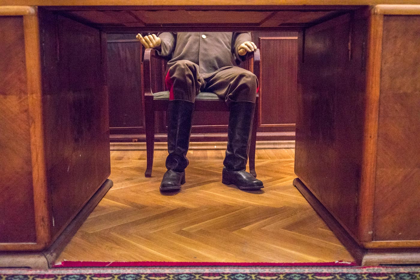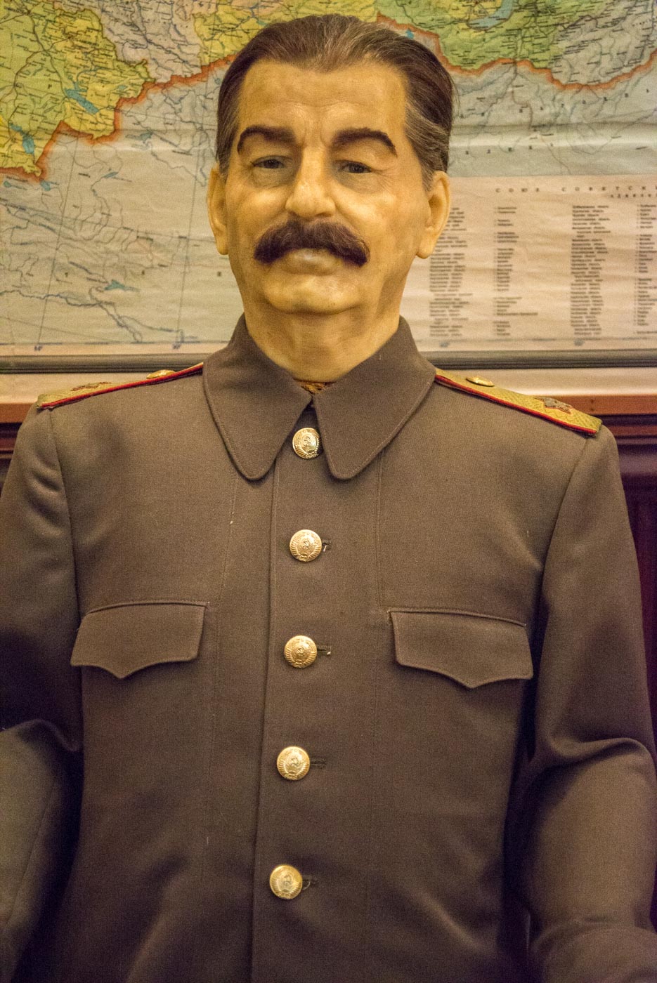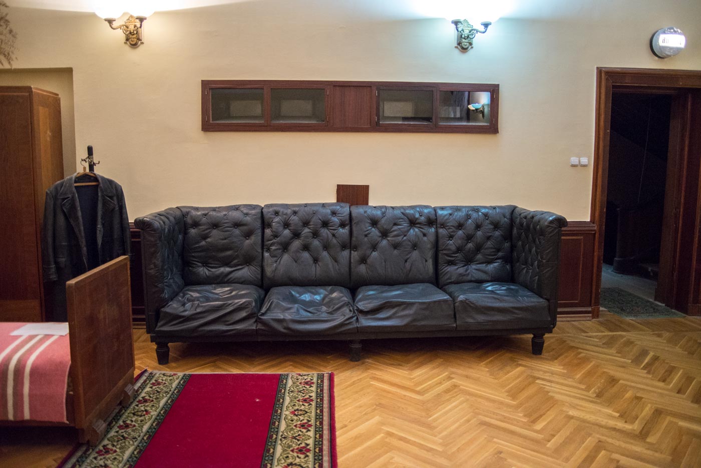 Тут Сталин бывал часто и с удовольствием, и именно поэтому она полностью функционирует до сих пор. По всей даче, внутри и снаружи, можно совершать променады, трапезничать в столовой генсека, жить в гостевых номерах высших чинов того времени, и, в конце концов, сыграть в его личные шахматы или на бильярде. Потрогать руками нельзя разве что экспонаты в музее Сталина, располагающемся в комнате кинозала – там, исключительно для обозрения, выставлены личные вещи и, собственно, Он Сам, отлитый в воске.