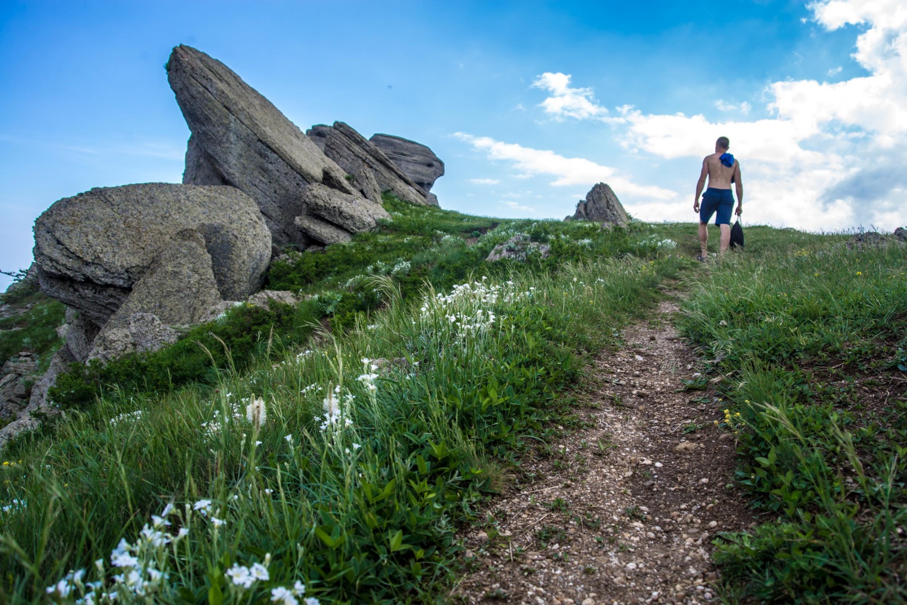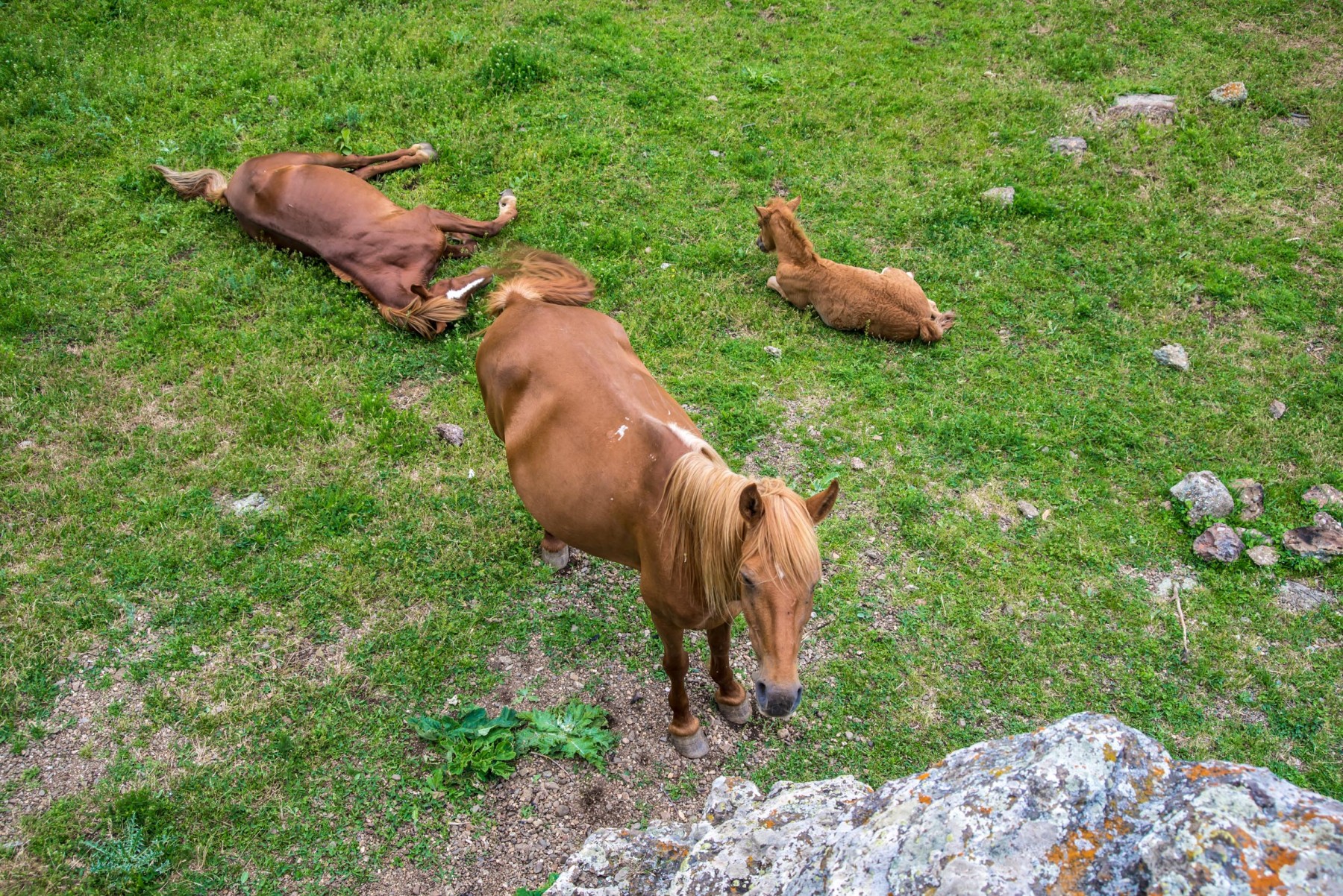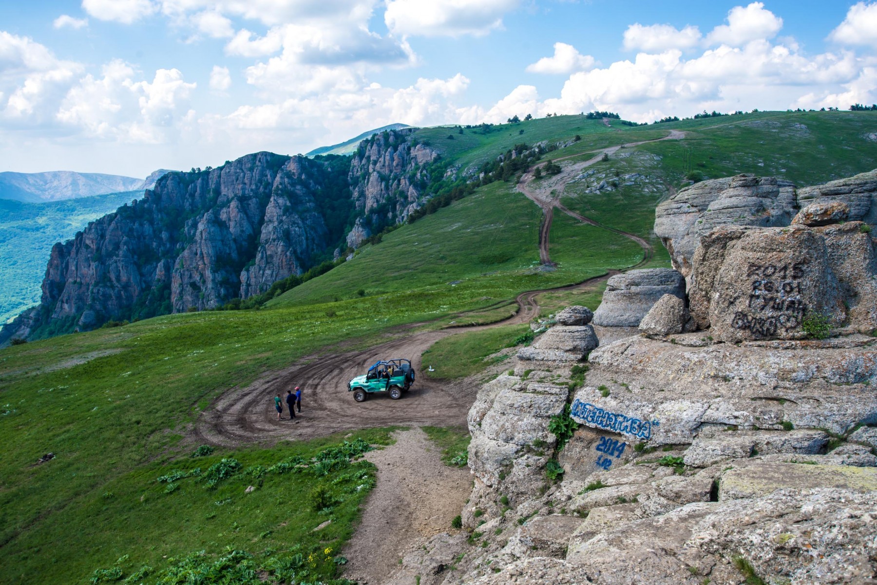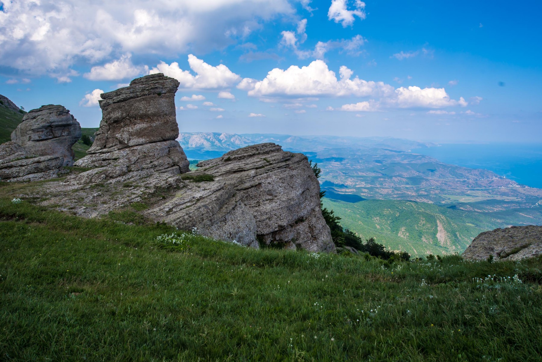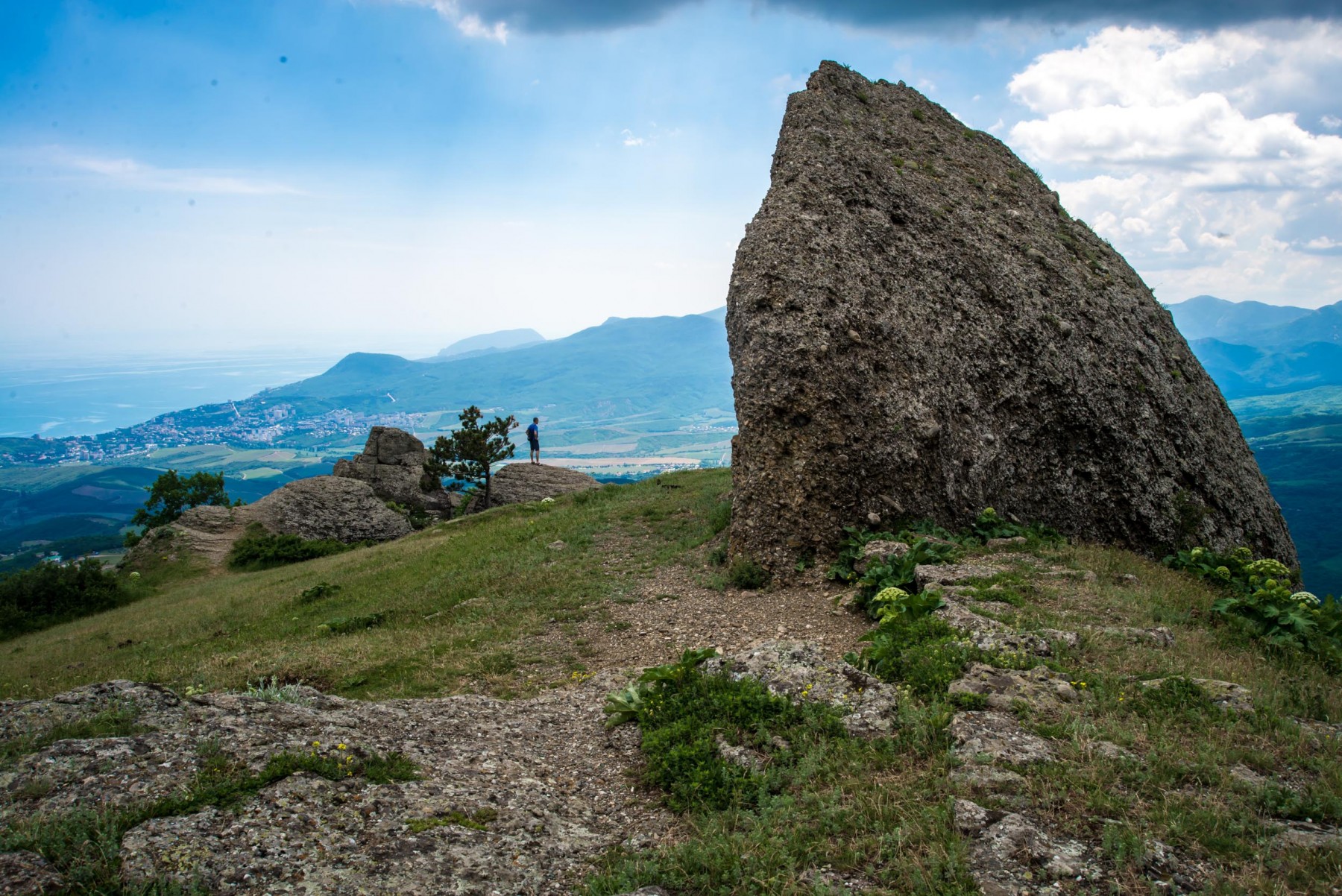 Оставив каменные изваяния внизу, вы выходите на просторную площадку – это Лунная поляна. Еще ее называют Солнечной поляной. Здесь можно удобно разместиться с палаткой, либо просто перекусить, любуясь восхитительными панорамами. На поляне часто пасутся лошади.