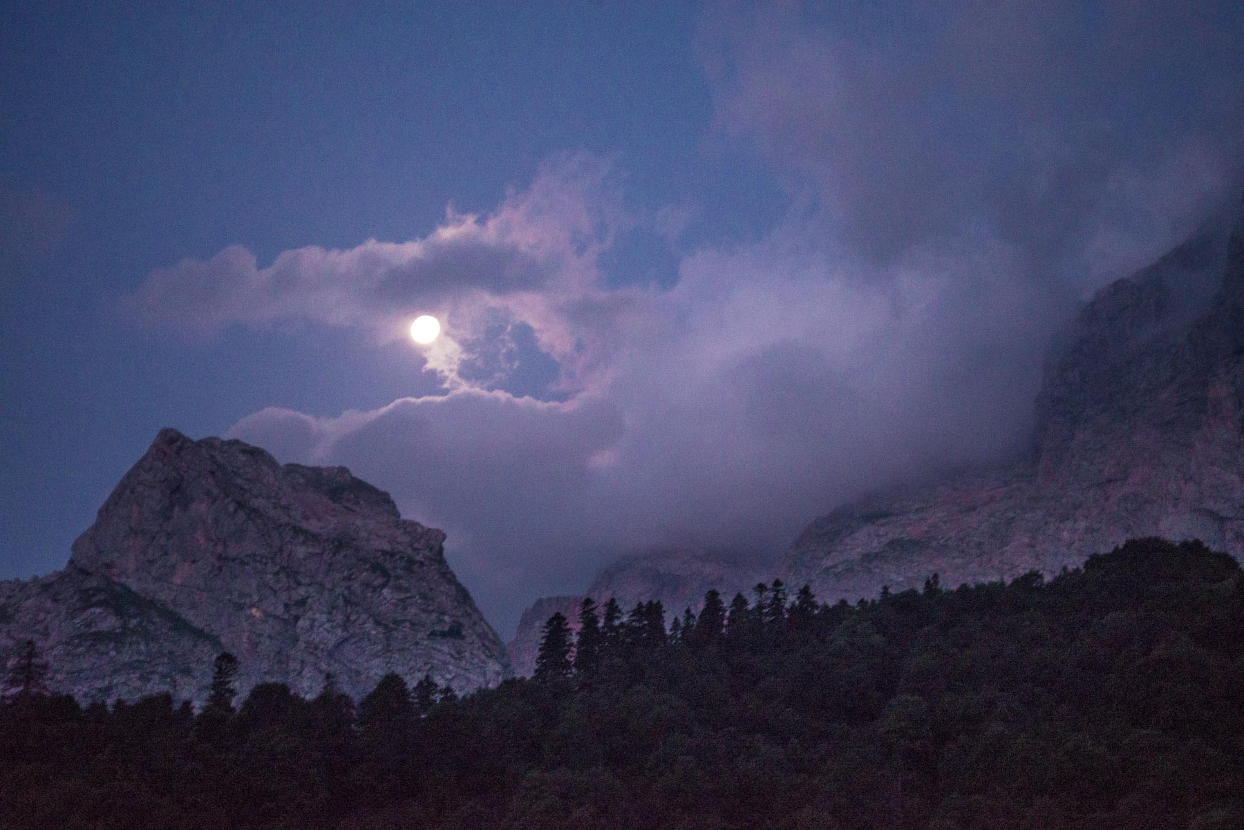 Лунная поляна на секунду выглядывает из-за облаков. Та самая поляна, над которой постоянно летают вертолеты, каждый турист, кто хоть раз поднимался на Фишт, уверен – здесь дача сами знаете кого.