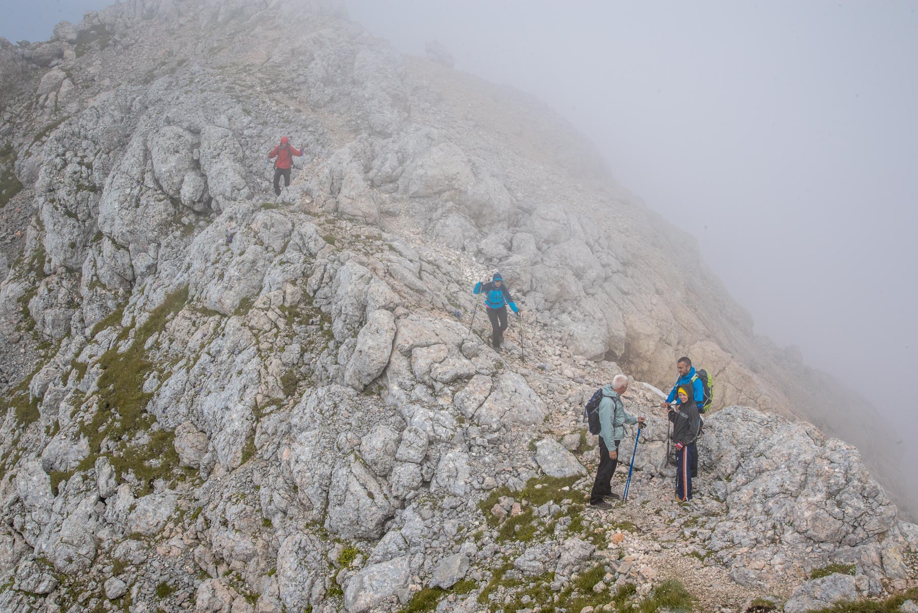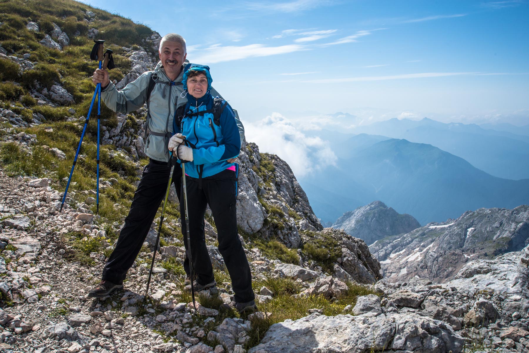 Пора спускаться. На гребне встречаем родителей, которые отстали от нас всего на полчаса. Это их первое восхождение на Фишт, о котором они мечтали еще с прошлого года.
