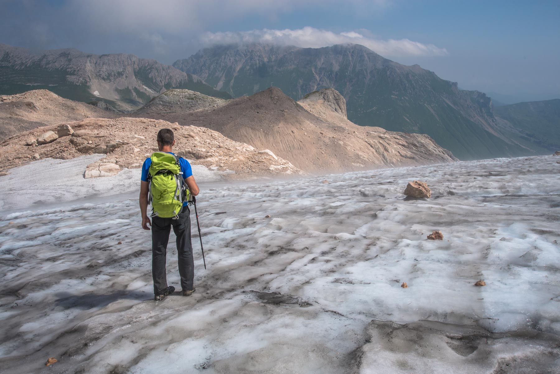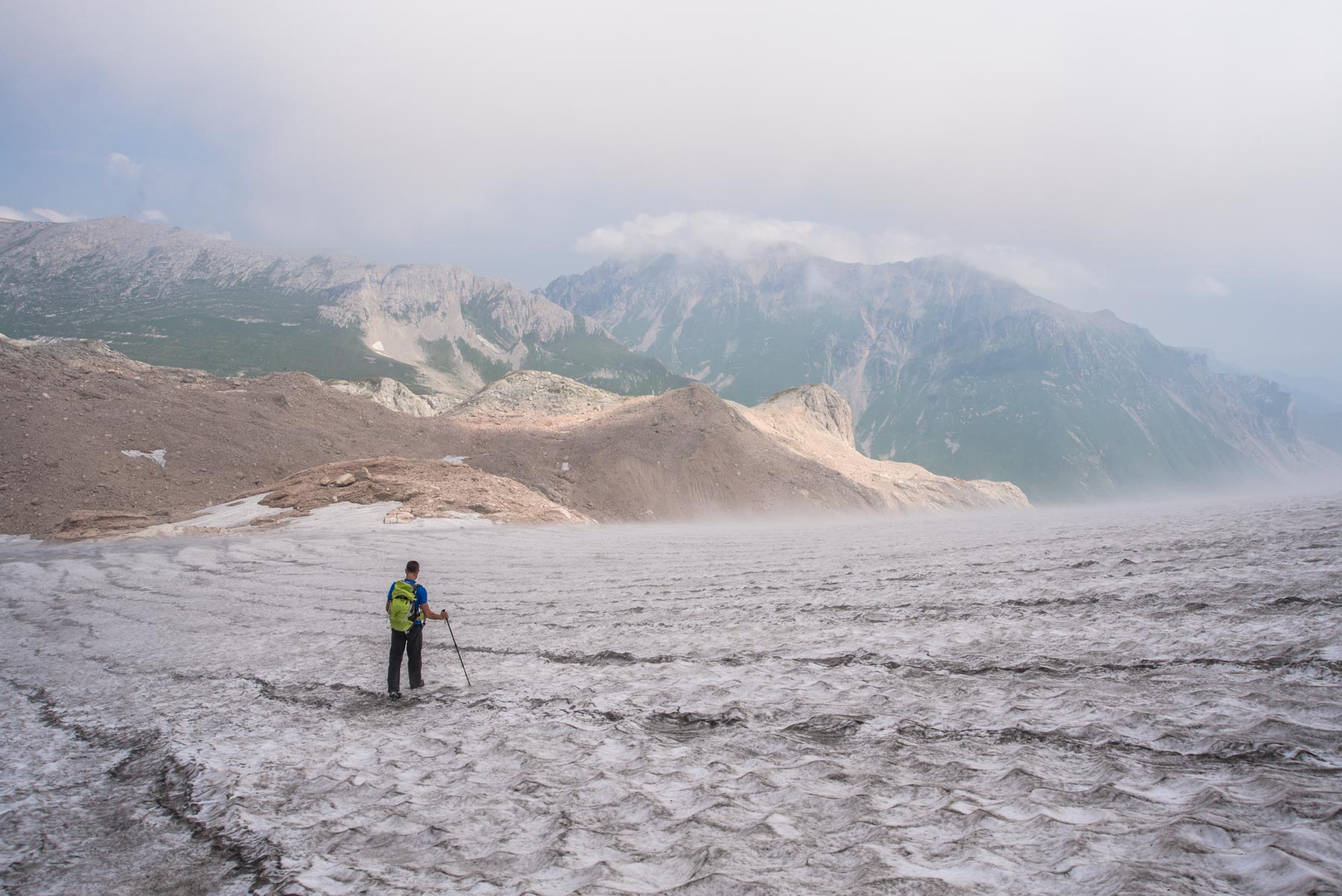 Доставать фотоаппарат из тяжелого рюкзака лень, поэтому фотографий дороги нет. Но могу совершенно точно сказать – это был самый жаркий поход по нагорью Лаго-Наки. Зима в этом году выдалась очень снежная и холодная, а лето неожиданно жарким. Однако последствия зимы до сих пор ощущаются в горах – на маршруте кое-где лежит грязный, уже почти окаменелый снег.