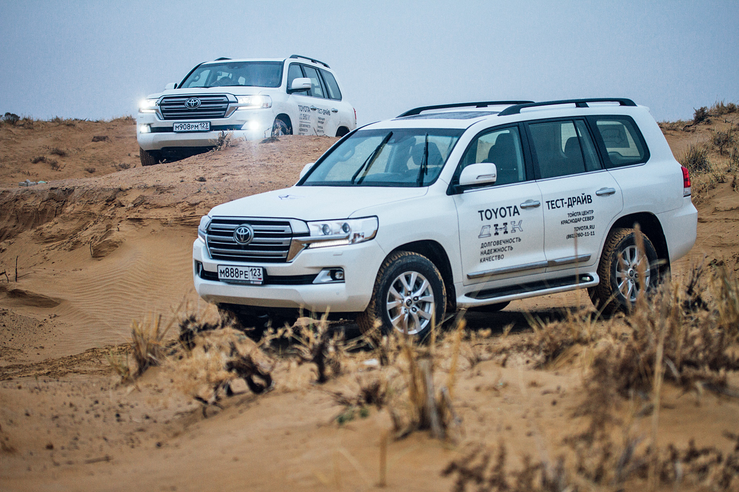 Состав экспедиции – 8 человек, среди которых Юга.ру, 161.ру, блогеры, фотографы и корреспондент от Кукарты – Евгений Маханько. Средство доставки до самого соленого озера России – 2 новых Toyota Land Cruiser 200.