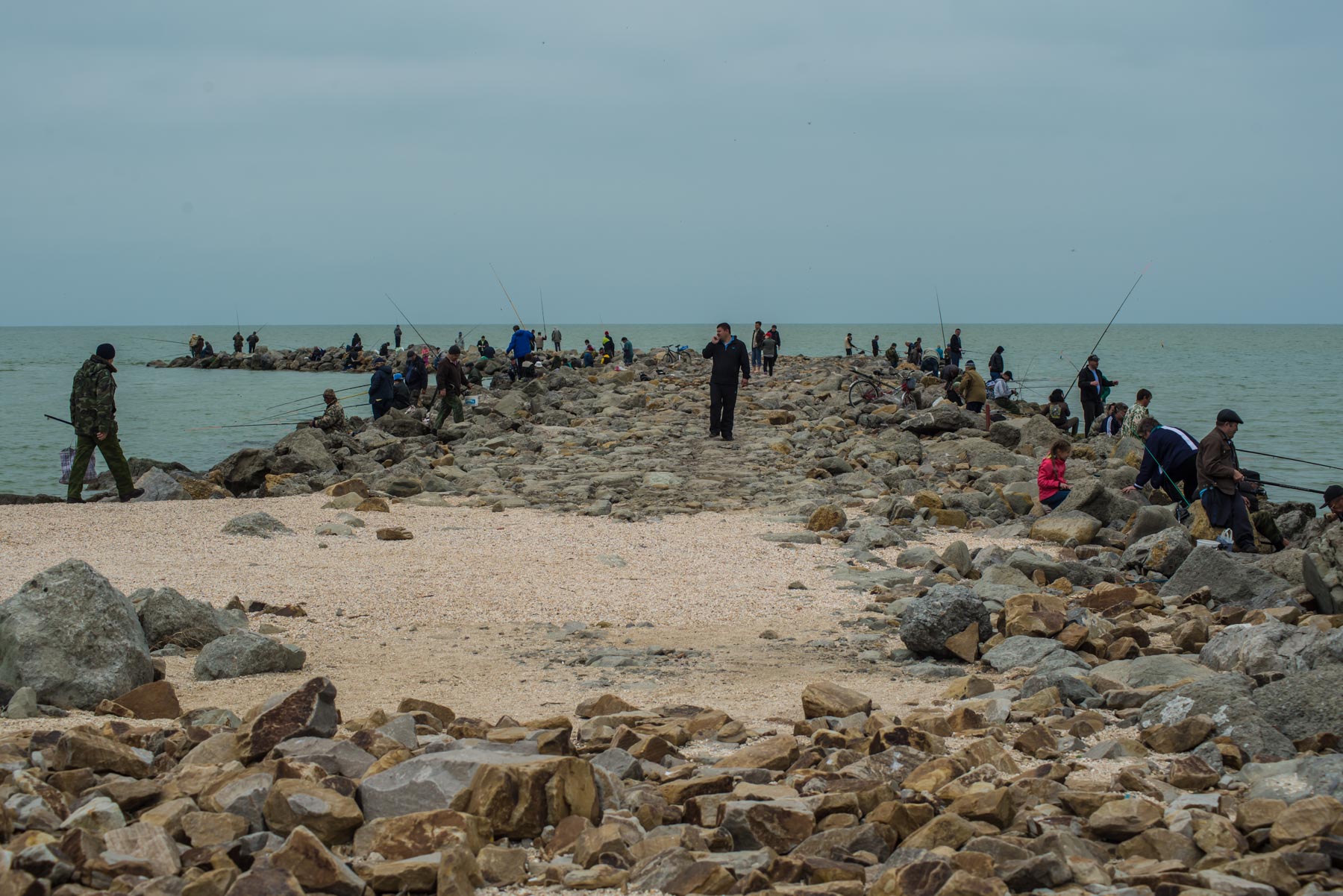 Сейчас на окончание Ейской косы можно встретить много рыбаков – они ловят здесь бычков и прочую мелкую рыбу.