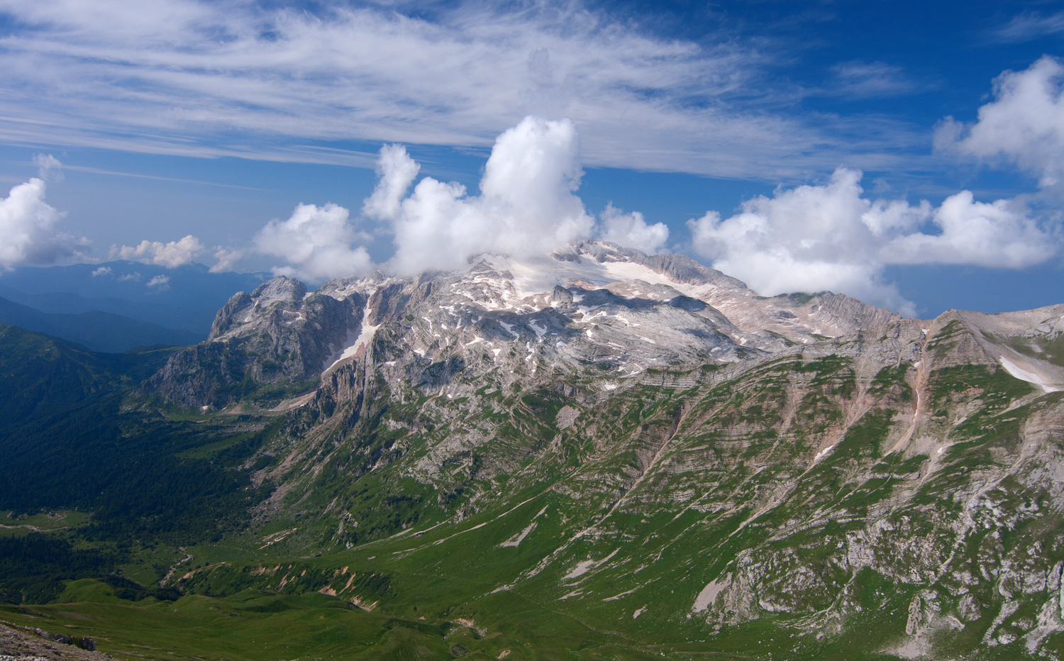 Гора Фишт – очень известная и одна из самых красивых гор на Западном Кавказе. Вместе с горами Оштен и Пшеха-Су образует Фишт-Оштенский массив, среди этих трех вершин гора Фишт самая высокая. Переводится с адыгейского, как «белая голова». Высота горы Фишт – 2867 м, что делает ее самой высокой горой Лагонакского нагорья. Это самая западная вершина Кавказских гор. На склонах горы Фишт расположились Большой Фиштинский и Малый Фиштинский ледники. Восхождения на Фишт очень популярны среди туристов, вершина находится на территории Кавказского государственного биосферного заповедника, чтобы пройти сюда, необходимо купить билет на кордоне заповедника.