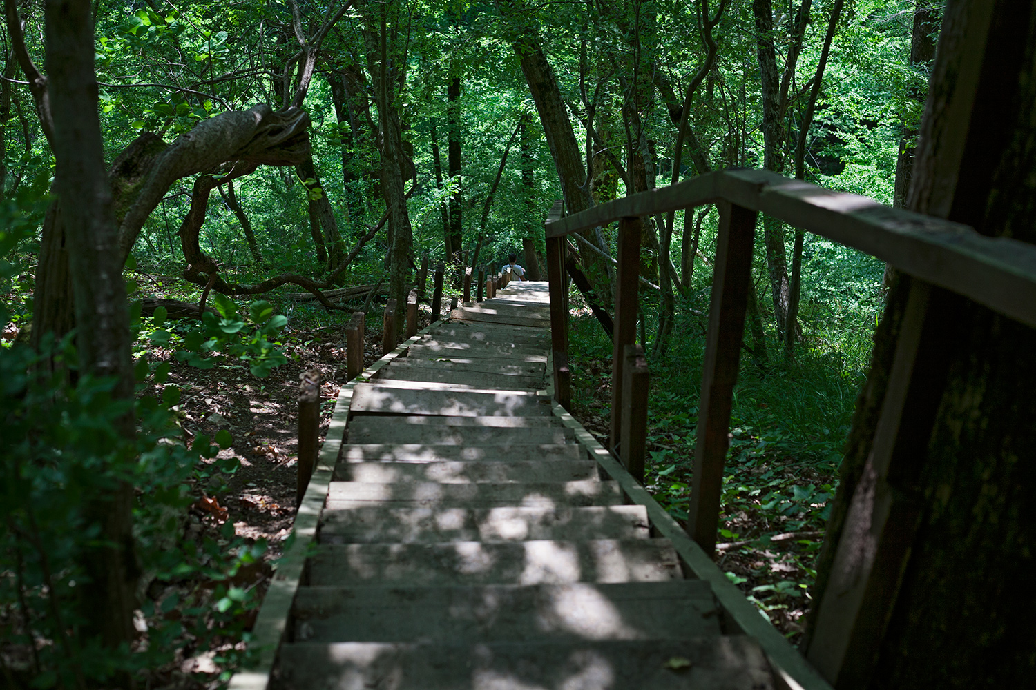 Для удобства туристов рядом с водопадом «Шнурок» есть деревянная лестница. Однако, находиться на ней одновременно более 10 туристам небезопасно.