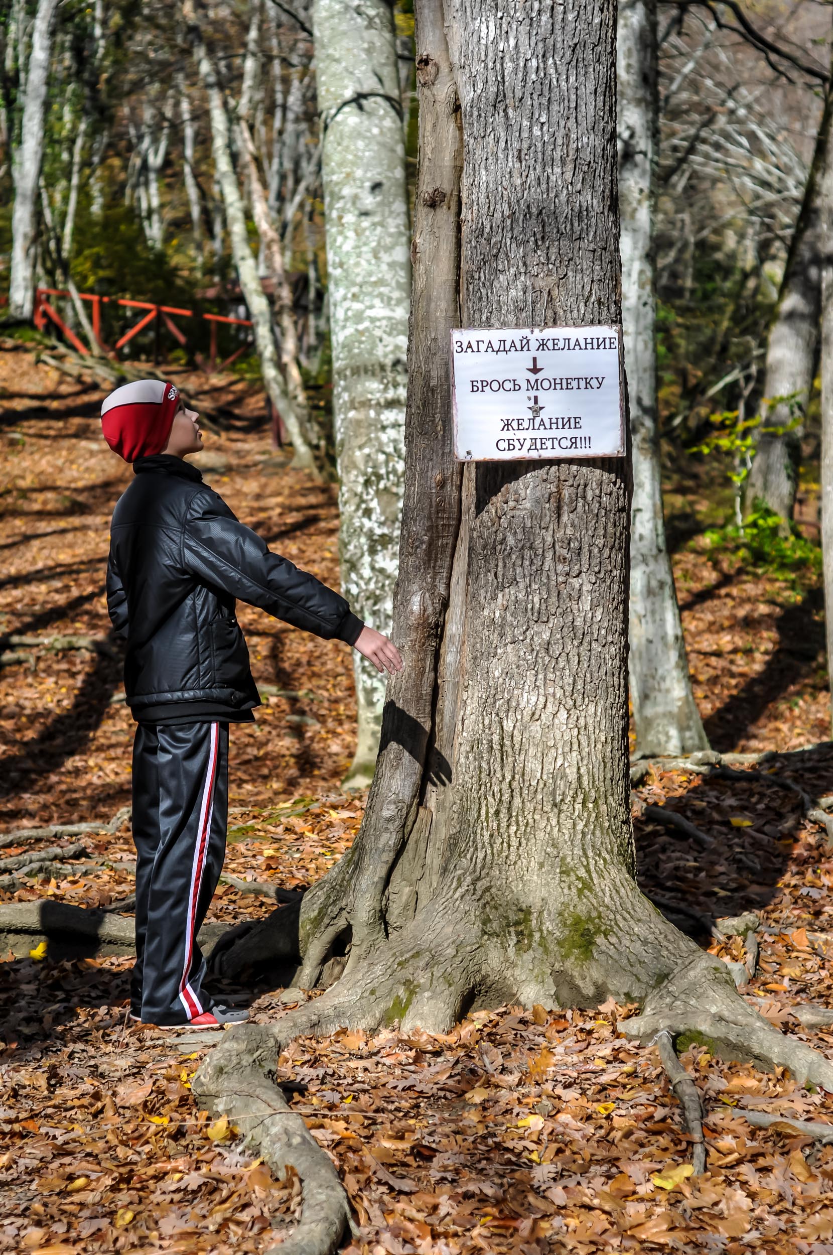 Трещина в дереве образует проход. Для осуществления загаданного надо бросить монетку и пройти через дерево. Администратор водопадов рассказывал, что пару лет назад в этом дереве застряла габаритная женщина.