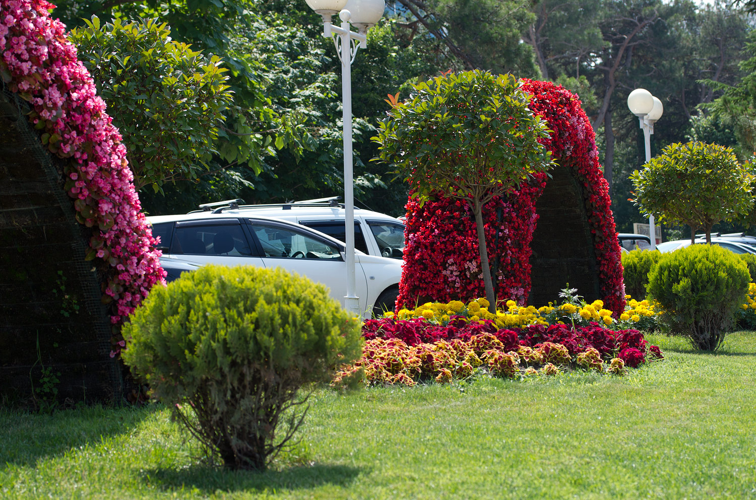 Условно можно выделить три части набережной. Самая красивая, разумеется, центральная, она же самая популярная у отдыхающих, расположена между аквапарком и улицей Садовой. Изобилует пестрыми клумбами, скамейками для отдыха и скульптурами, в этой части сосредоточено большое количество кафе и ресторанов, сюда имеют выходы известные санатории.
