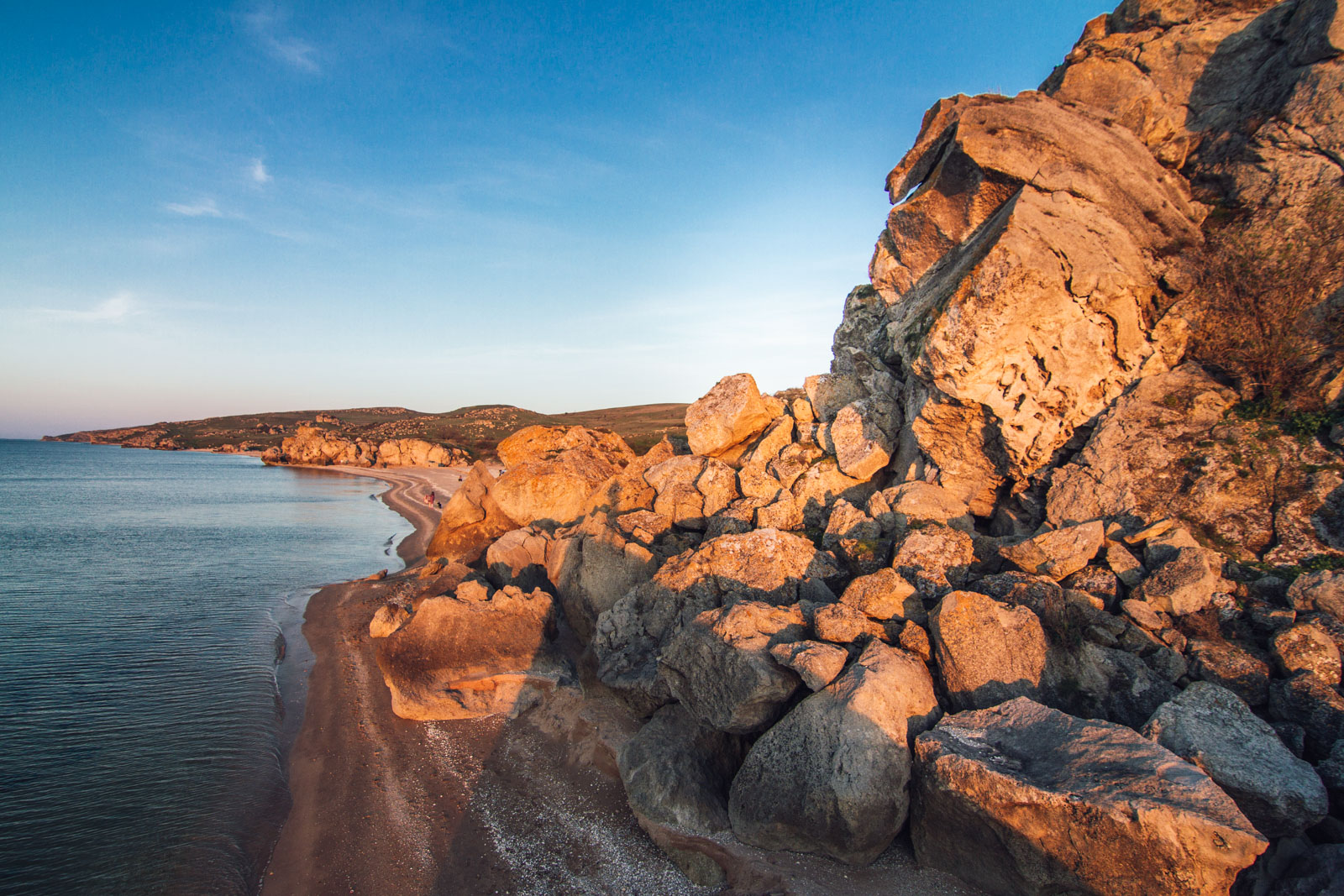 Очень красивые пляжи, состоящие из множеcтва маленьких, уютных бухт в районе Караларской степи, недалеко от города Керчь. Расположены на Азовском море. Остановка на несколько дней возможна только в палатке и сразу стоит подумать о воде, т.к. источники найти трудно. Еще стоит учесть палящее солнце, здесь мало укрытий.
