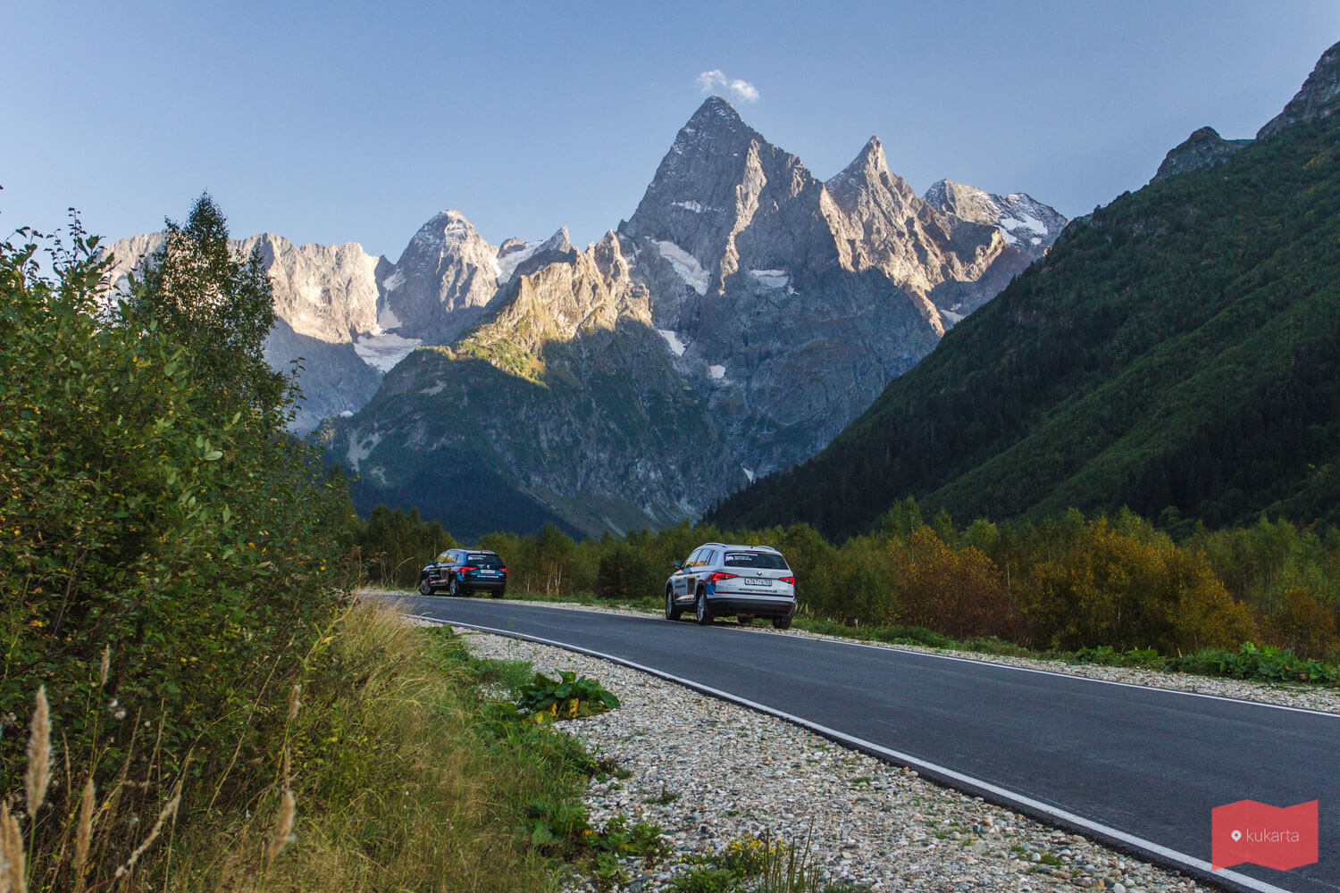 Проезжая по дороге можно наблюдать невероятные горные панорамы. На пути покажутся главные снежные вершины Клухорского района: Домбай-Ельген, Гитче-Муруджу, Хакель, Чотчу.