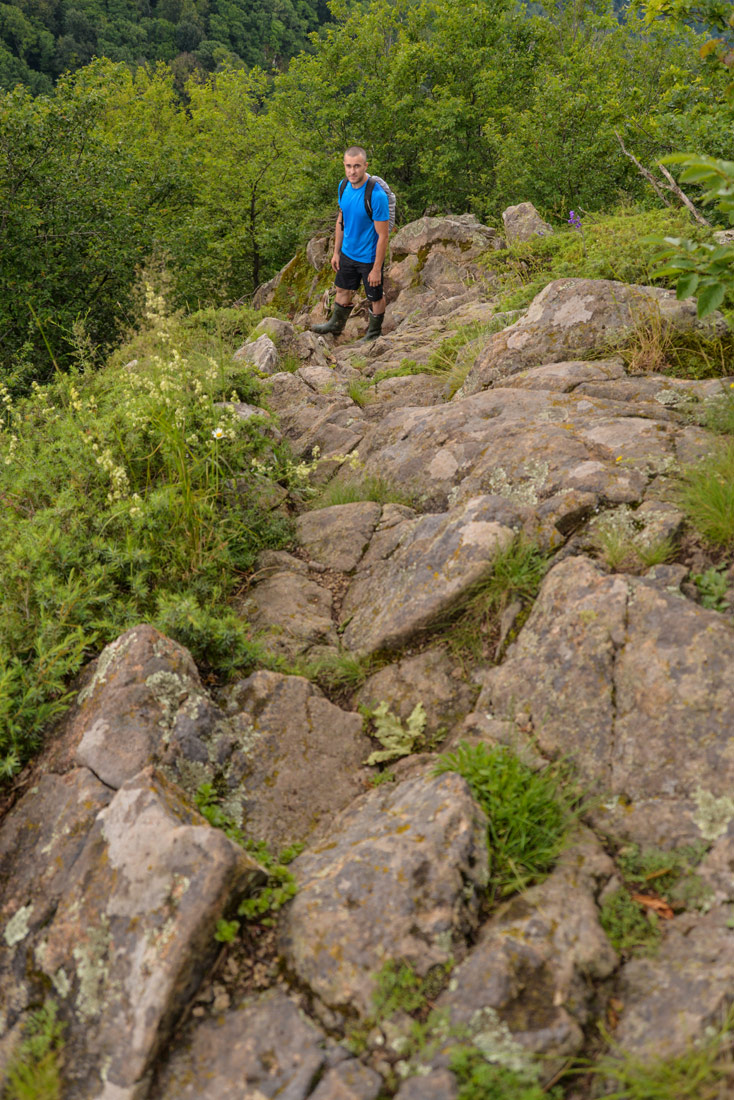 Едем со стороны Анастасиевки в сторону базы отдыха “Анастасиевские поляны”, доезжаем до указателя на эту базу отдыха и едем немного дальше. По пути увидите ворота, на которых написано “Дом пасечника Золотарева”. Отсюда начинается маршрут. Слева от дома берет начало лесная дорога, которая пересекает ручей и начинает круто подниматься вверх. Весь остальной путь вам придется только подниматься.
