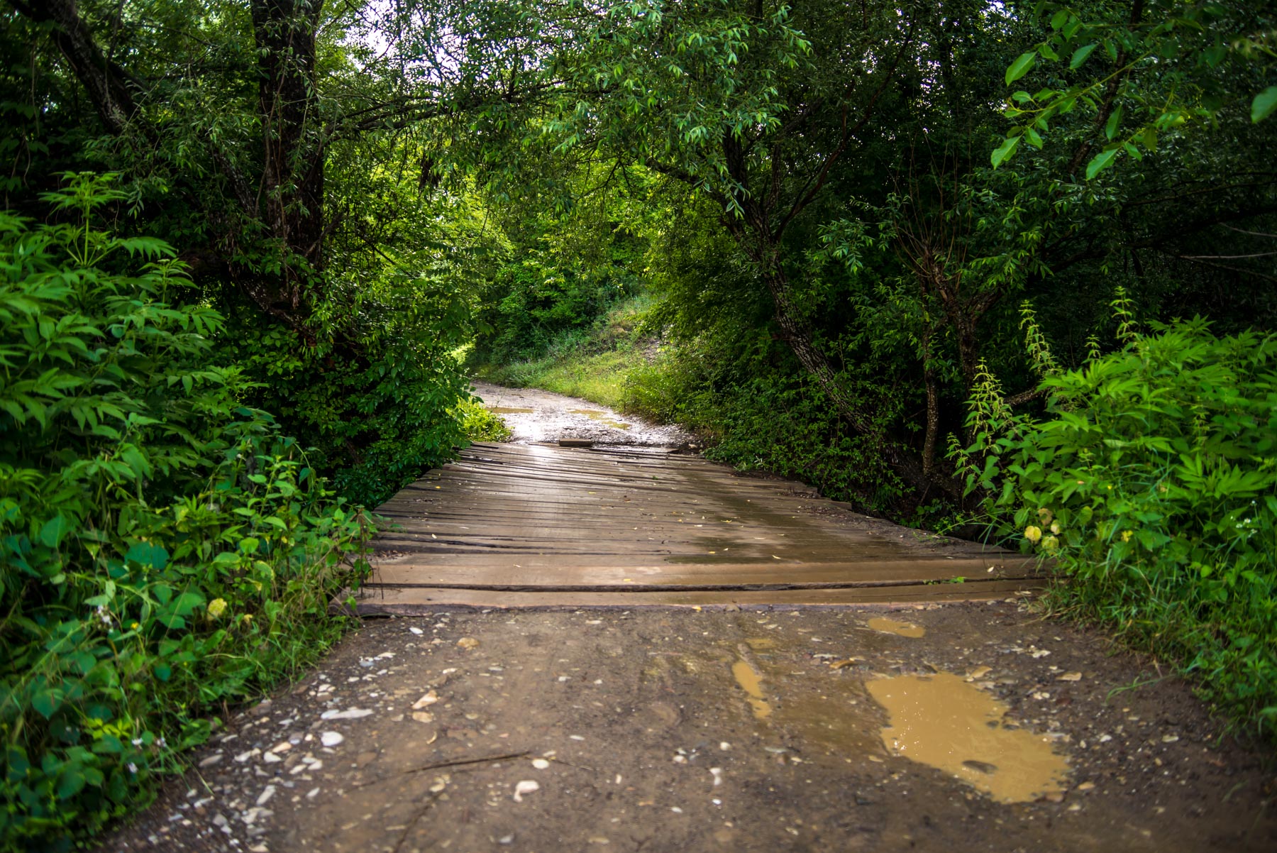Через какое-то время тропа выходит на грунтовую дорогу. Вам направо.
