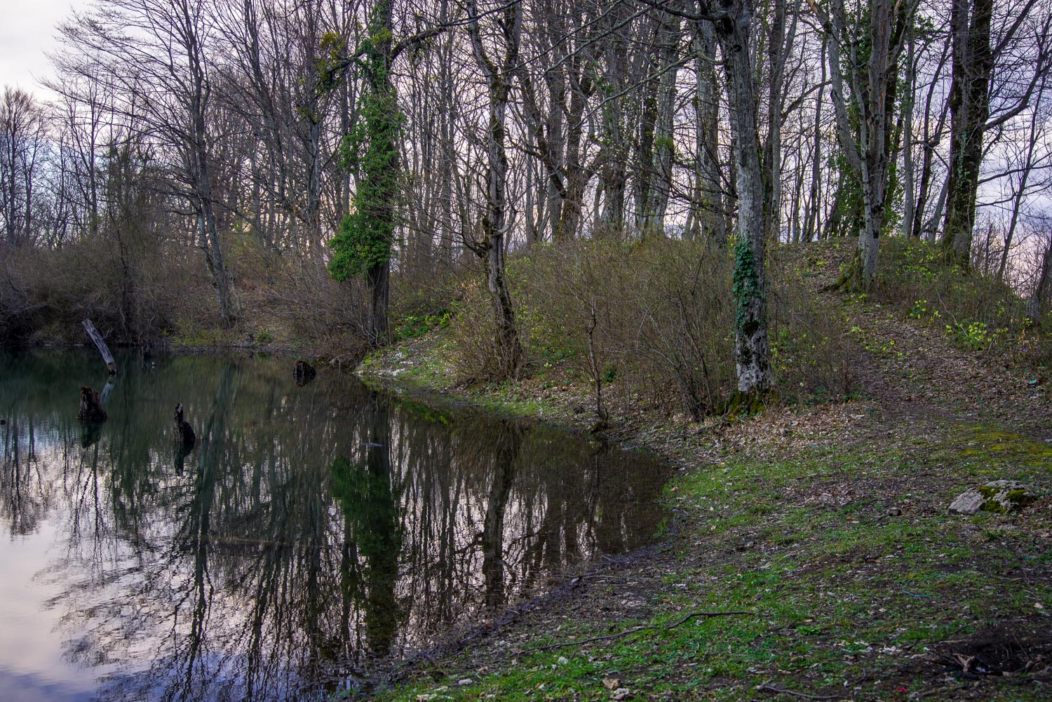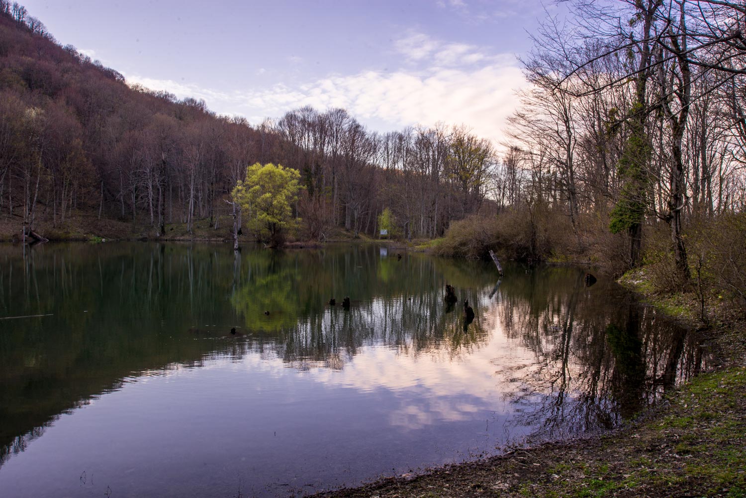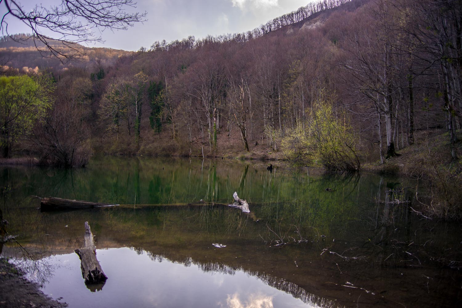Самое крупное озеро района находится на почти километровой высоте от уровня моря и имеет длину в 70 метров и ширину в 50, глубина редко превышает 15 метров. Озёрные воды чисты и прозрачны, в них водится множество рыбы и раков. Но правда желания искупаться не возникает – дно устлано листвой, здесь много наваленных деревьев. А фишка озера – торчащие прям из воды пеньки. Все это оставляет впечатление заброшенности и придает озеру зловещий, мистический окрас. В окрестностях озера, несмотря на его чрезмерную популярность у местных жителей и туристов, можно встретить медведей, оленей и коз.