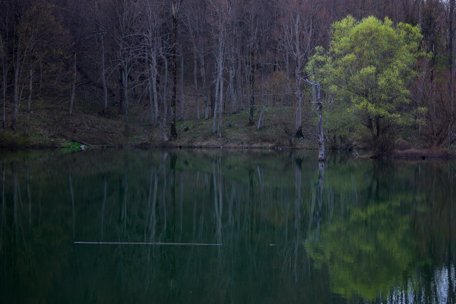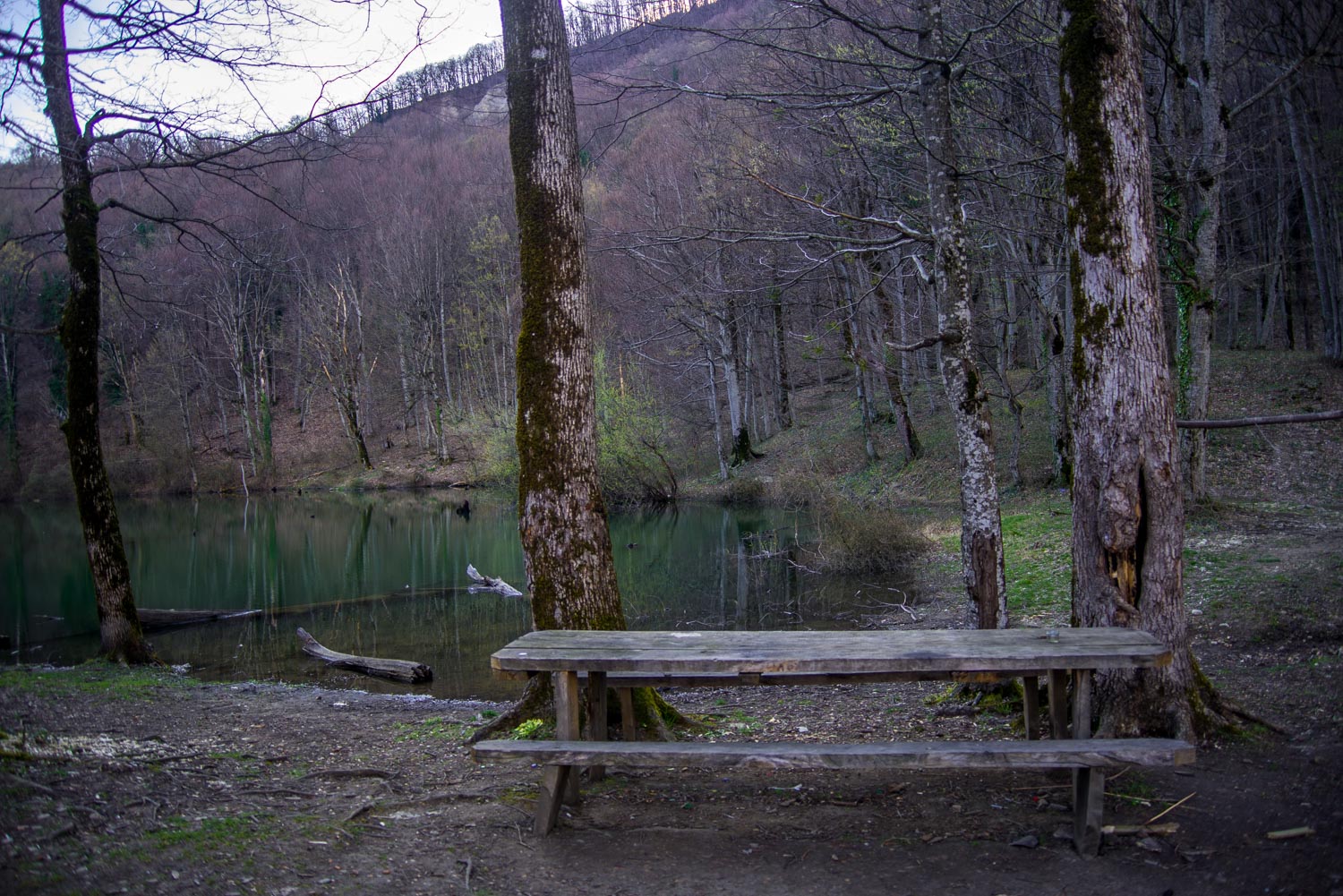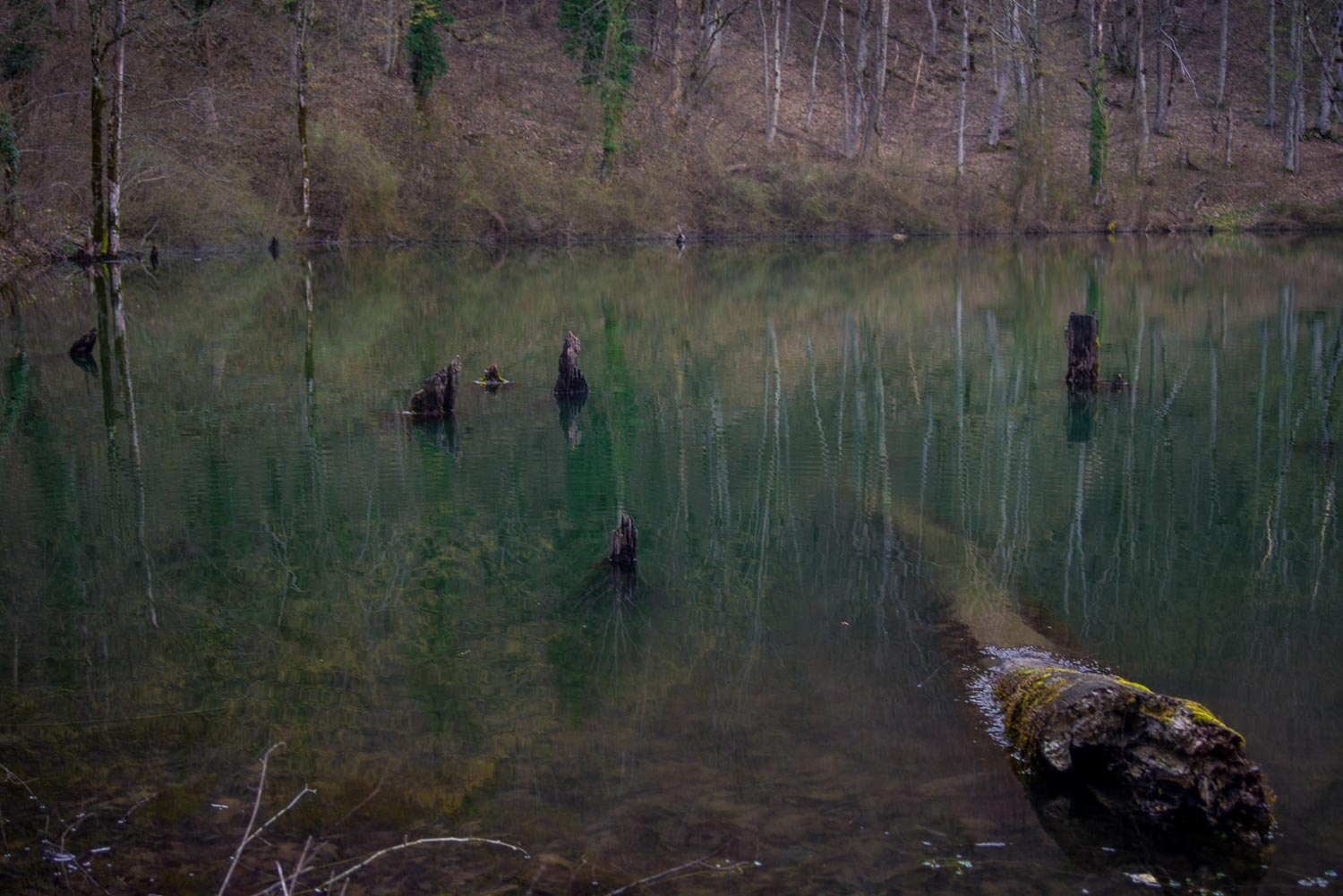 Самое крупное озеро района находится на почти километровой высоте от уровня моря и имеет длину в 70 метров и ширину в 50, глубина редко превышает 15 метров. Озёрные воды чисты и прозрачны, в них водится множество рыбы и раков. Но правда желания искупаться не возникает – дно устлано листвой, здесь много наваленных деревьев. А фишка озера – торчащие прям из воды пеньки. Все это оставляет впечатление заброшенности и придает озеру зловещий, мистический окрас. В окрестностях озера, несмотря на его чрезмерную популярность у местных жителей и туристов, можно встретить медведей, оленей и коз.