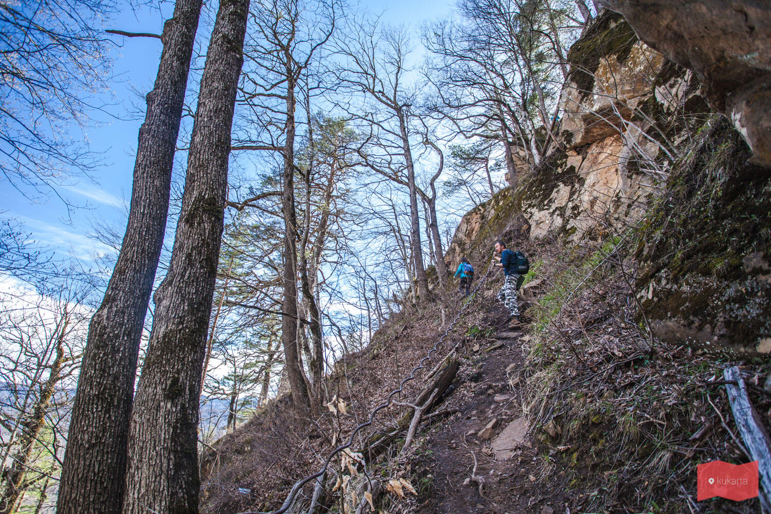 Тропа к гроту от дороги, где можно оставить машину, составляет около 2,6 км. Первая часть тропы проходит по лесу с минимальными подъемами. Из минусов можно отметить, что порой тропа разветвляется, ориентируйтесь на метки (краска, тряпки или лента на деревьях). Когда вы подойдете к первому водопаду на реке Кутанка, оттуда тропа резко пойдет вверх. Ориентир – дерево с разветвленной корневой системой, эти же корни служат отличными ступенями при восхождении вверх. Далее вдоль тропы натянут металлический трос, значительно облегчающий подъем.