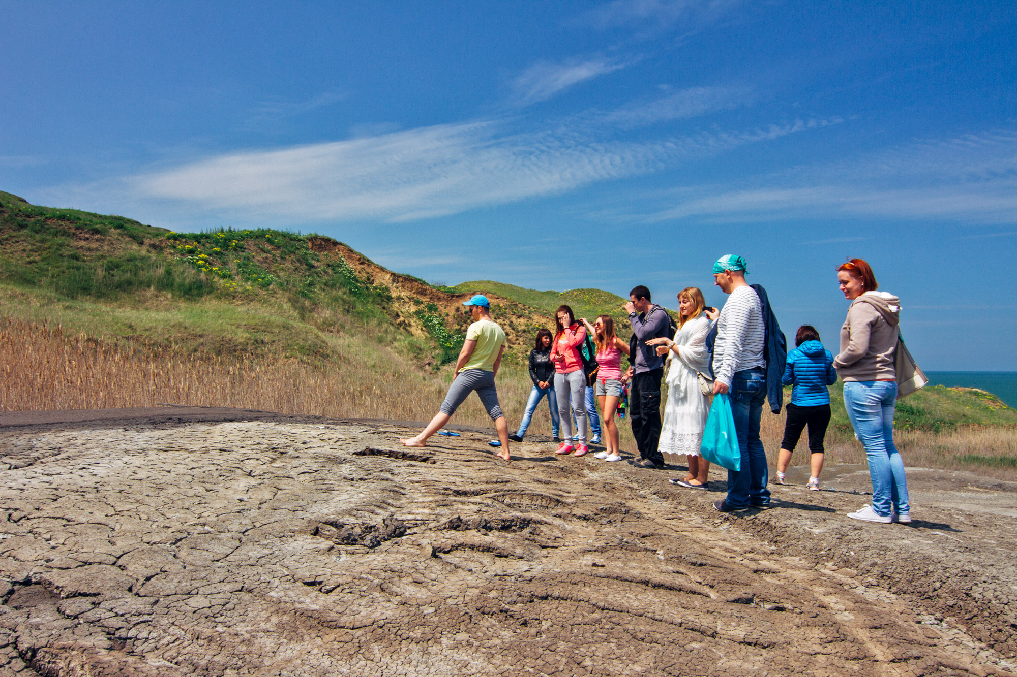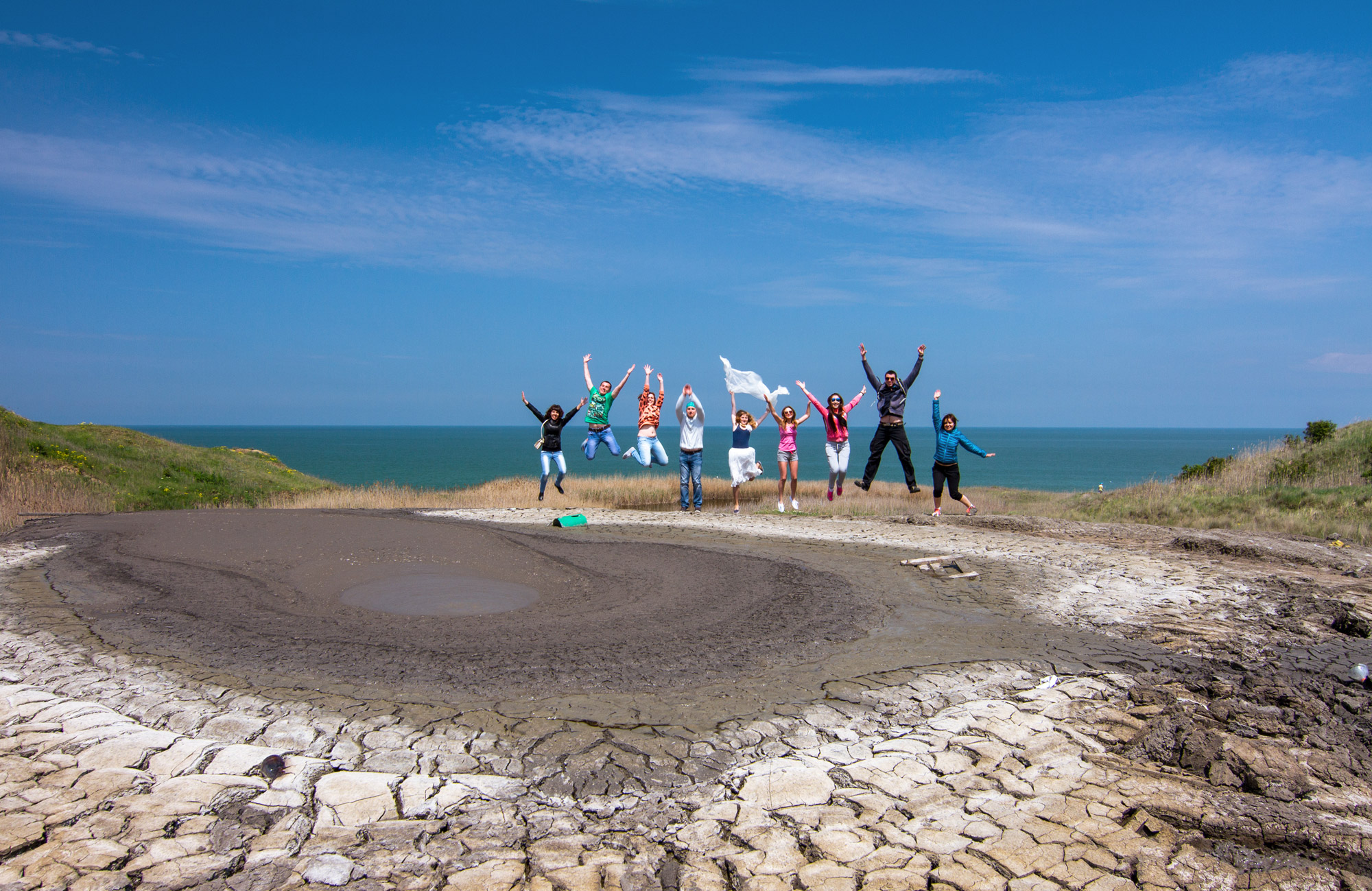 Говорят, что грязь вулкана лечебная, но находиться в жерле более 10 минут не советуют, уже начинается обратный процесс. Смыть грязь можно в море, которое находится всего в нескольких шагах от вулкана. Подробнее о пляже на мысе Пеклы.