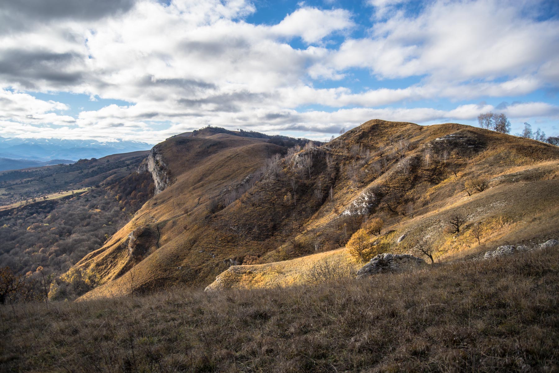 Продолжительность хребта – 18 км, наивысшая точка – 1211 м. Отсюда прекрасно видно весь поселок, а так же соседний населенный пункт Андрюки, что находится по ту сторону реки Малая Лаба. Большинство склонов хребта пологие, покрытые травой, у края деревья практически отсутствуют. Но местами встречаются скальные обрывы, а также останцы-часовые. Это такие высокие каменные столбы, которые образовались в результате неравномерного выветривания породы.