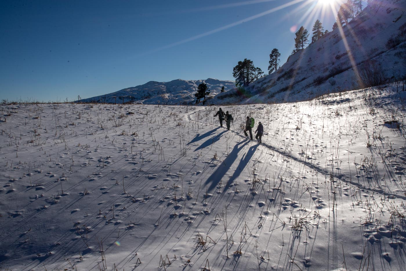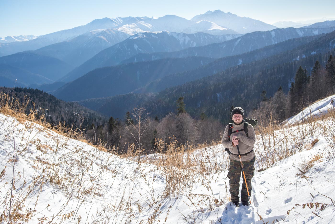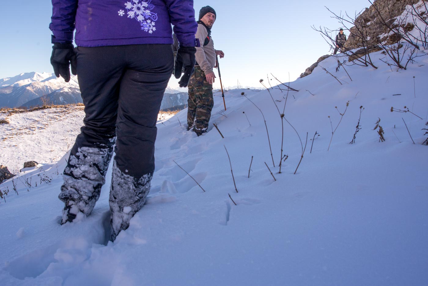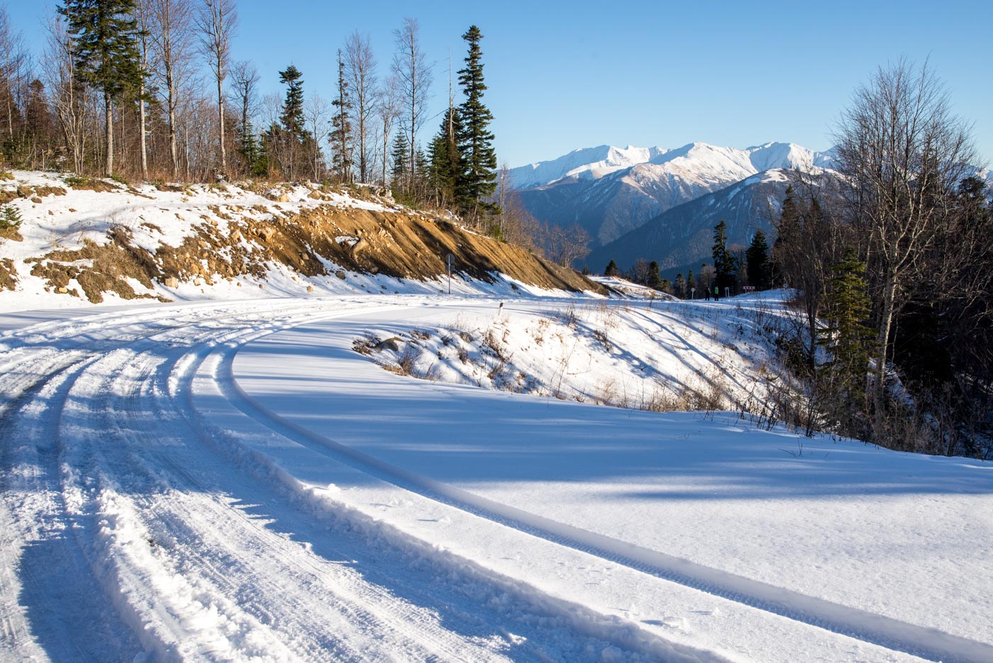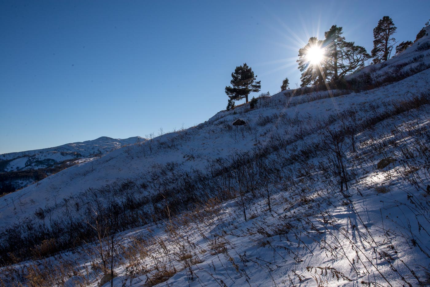 Палящее, несмотря на мороз, солнце, следы медведя и маленького медвежонка на снегу. Тишина. Всегда на маршруте до Оштена я встречала толпу людей, на праздниках их количество даже превышало число посетителей среднестатистического торгового центра. А в этот раз никого. Все-таки есть преимущества в зимних походах.