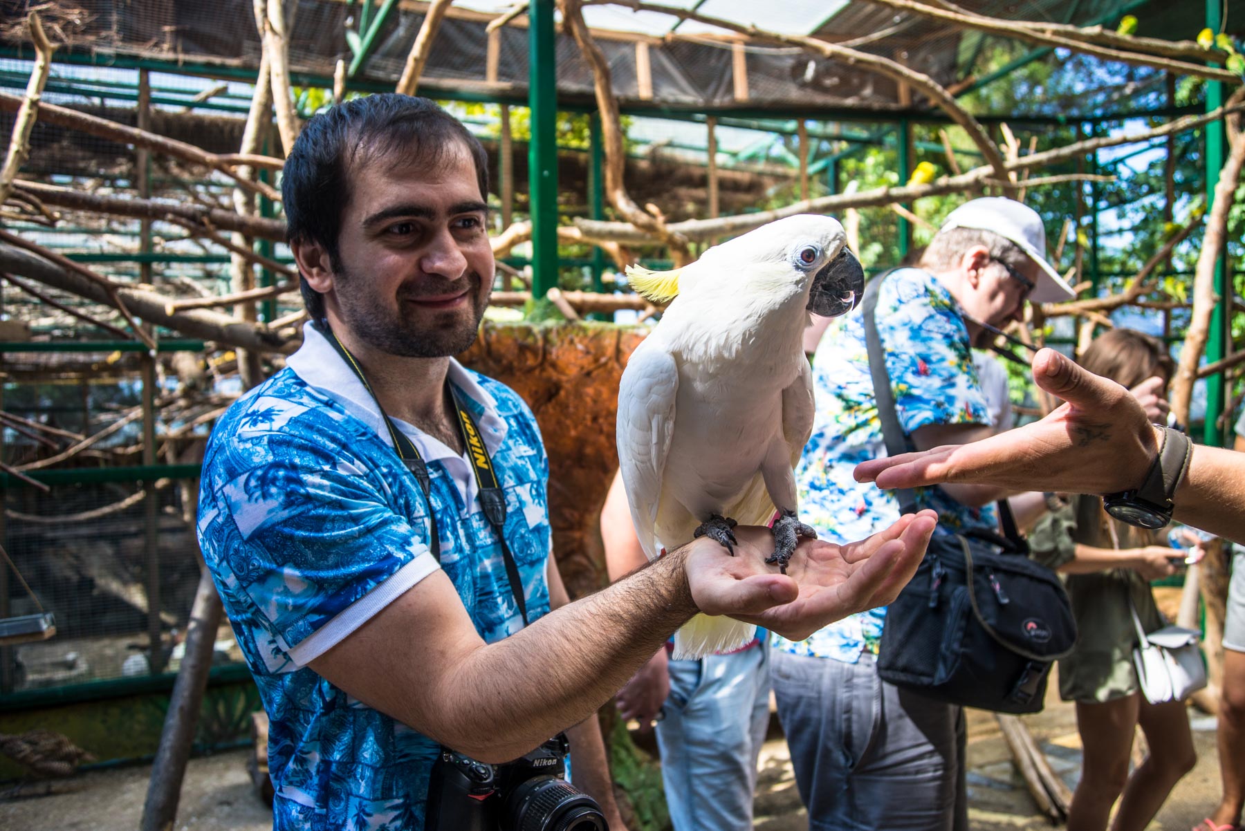 Особенность контактного зоопарка в “Олимпе” заключается в том, что туристы могут зайти прям в птичник и оказаться лицом к лицу с большим числом пернатых. Это куры, попугаи, павлины и даже пеликан, который ревностно охраняет свое личное пространство – лучше не суйте ему пальцы. Попугаи не откажутся посидеть у вас на плече, на голове. Есть проворные особи, которые норовят стащить что-то из личных вещей – глядите в оба.
