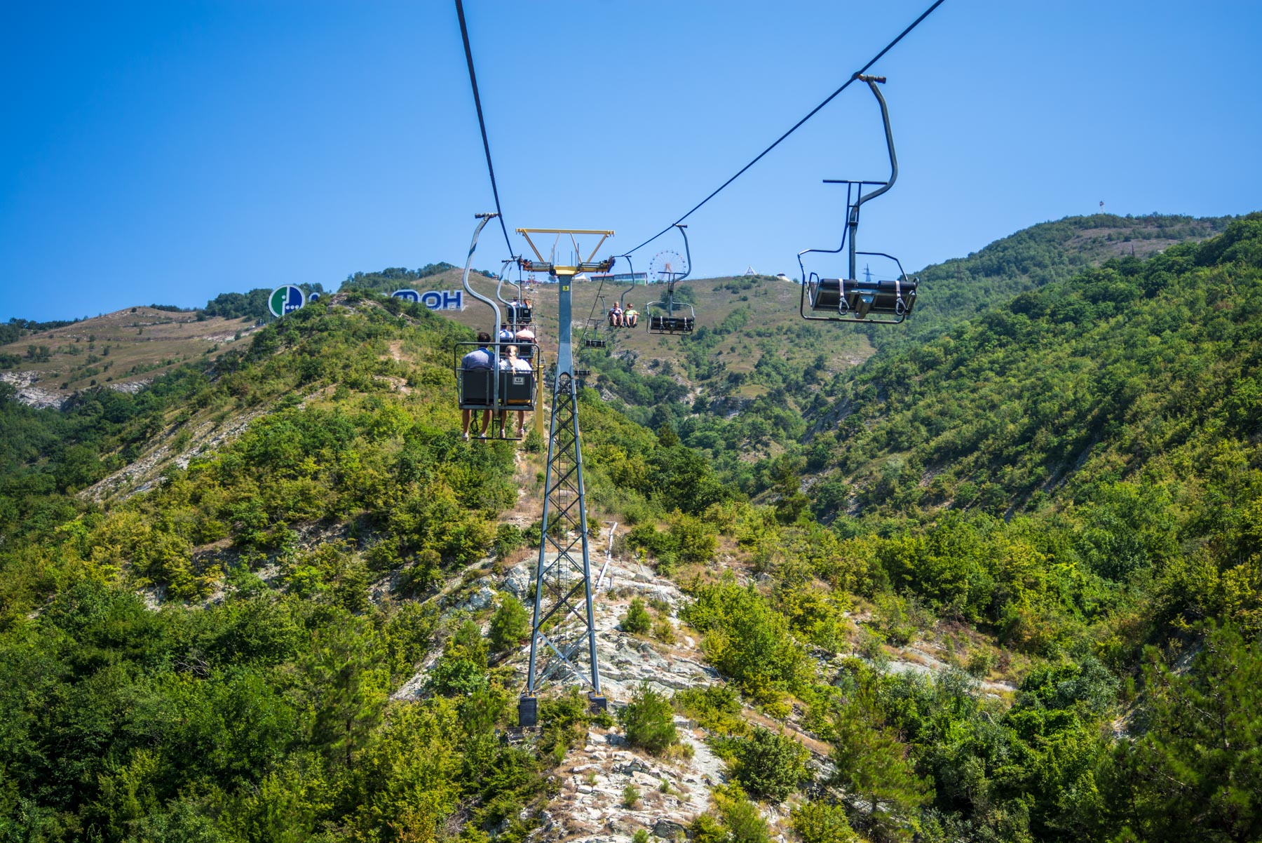 В Геленджике две канатные дороги – та, что находится в Сафари-парке и подъемник парка “Олимп”. Оба кресельных подъемника довозят туристов от подножия до вершины Маркхотского хребта. Путешествие длится около 15 минут и обычно пугает тех, кто боится высоты.