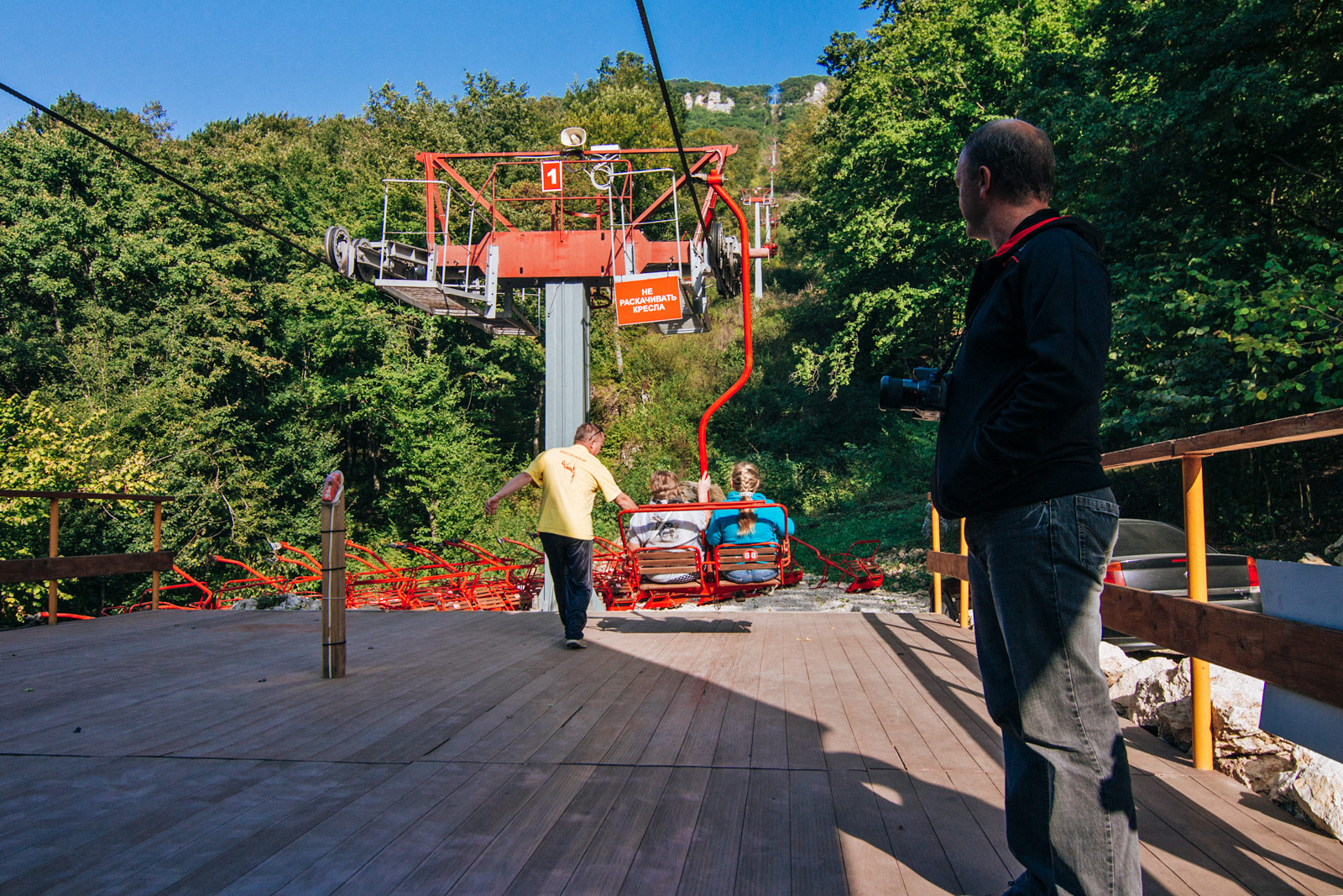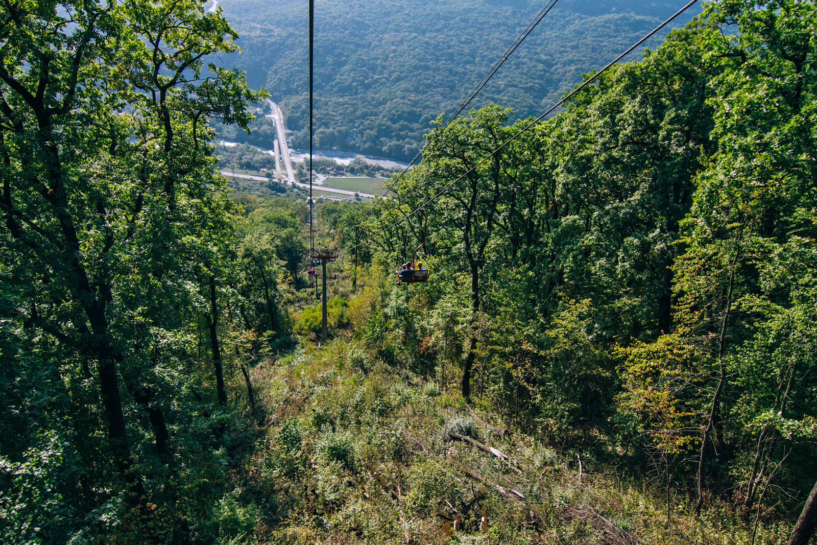 Находится напротив развился дороги, уходящей на плато Лаго-Наки. Прежде, чем ехать, рекомендуем прозвонить по телефону. Еще стоит обратить внимание, что со стороны дорога может выглядеть не рабочей, но, как только вы купите билеты – ее включат.