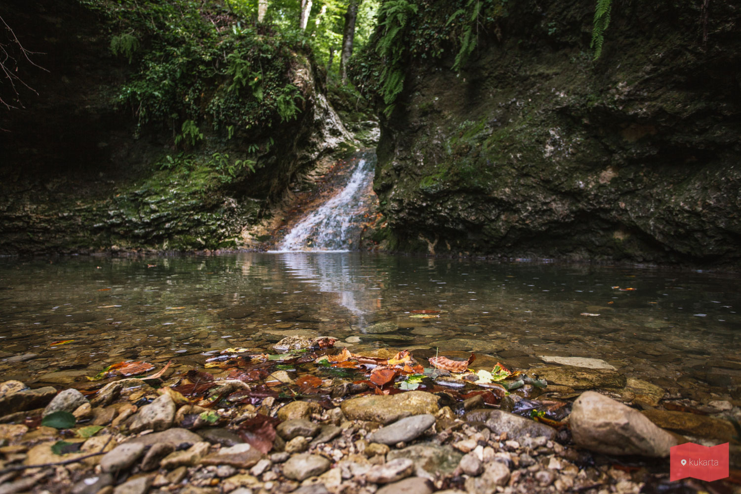 В начале каньона мы сразу встретили вот этот водопадик, который смотрелся очень уютно и выглядел по-осеннему.