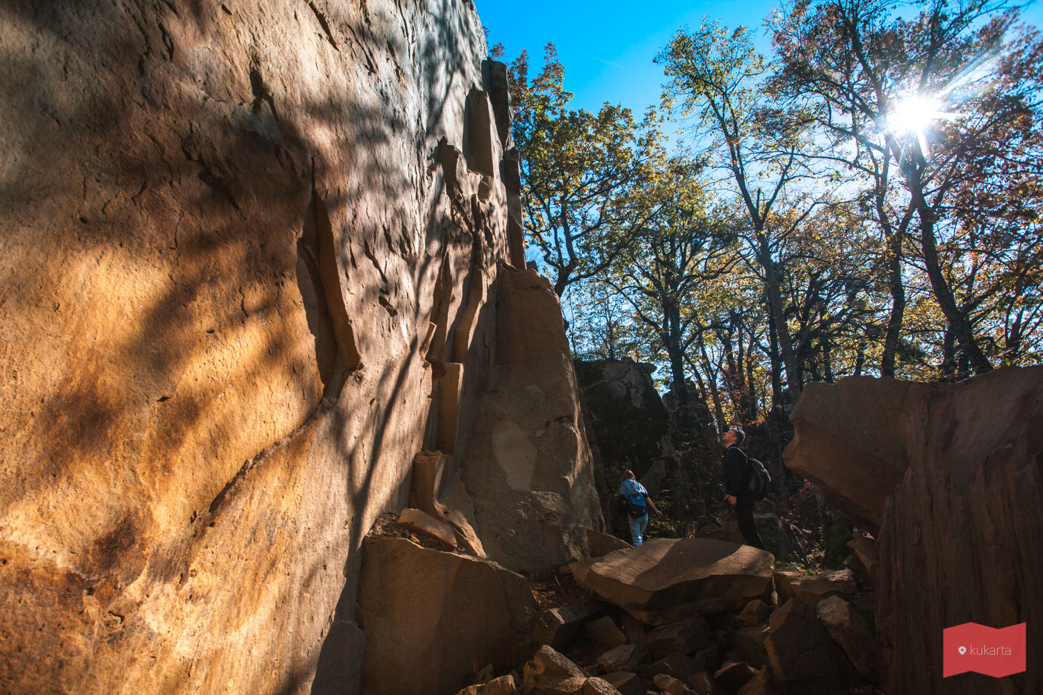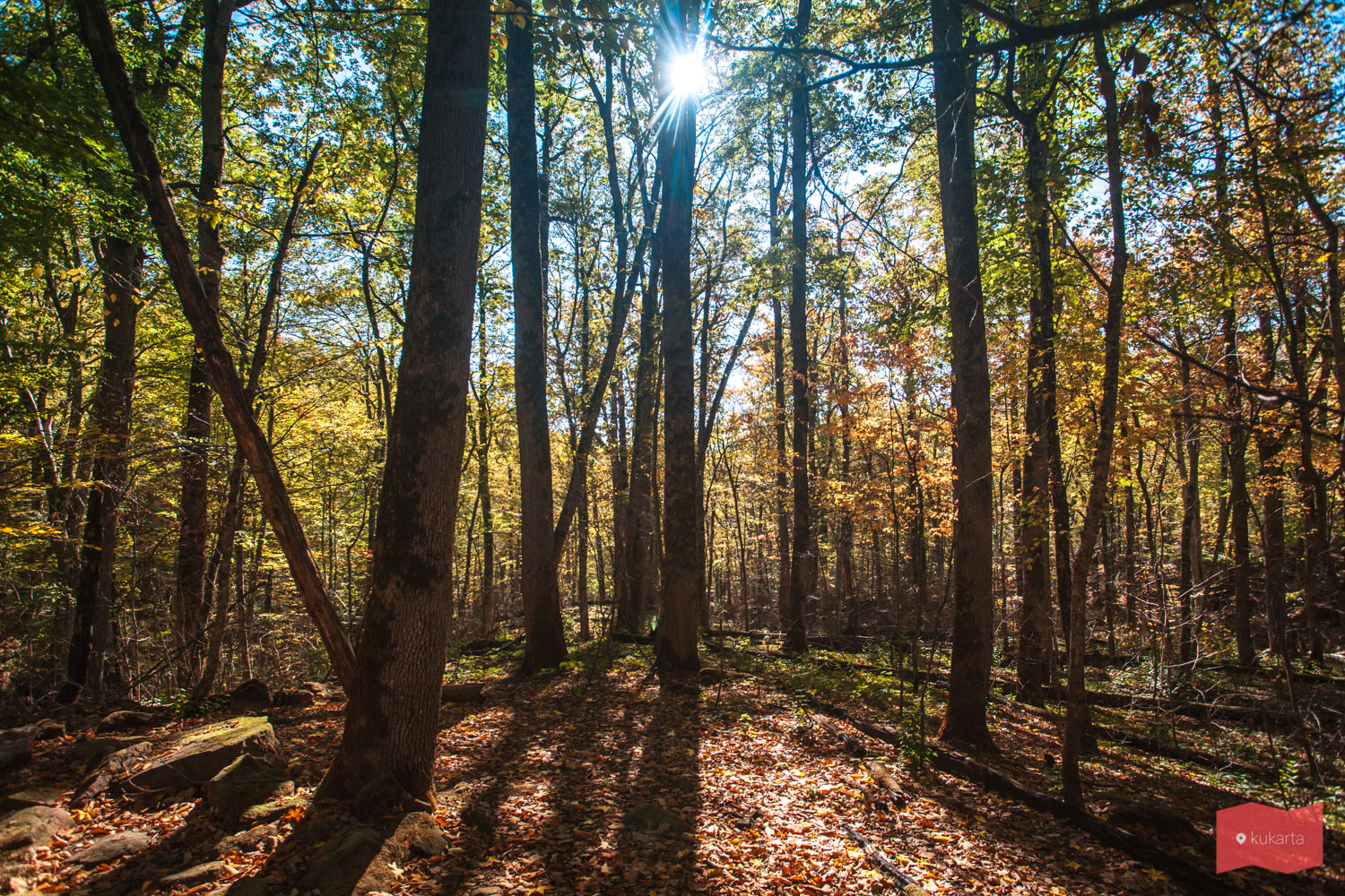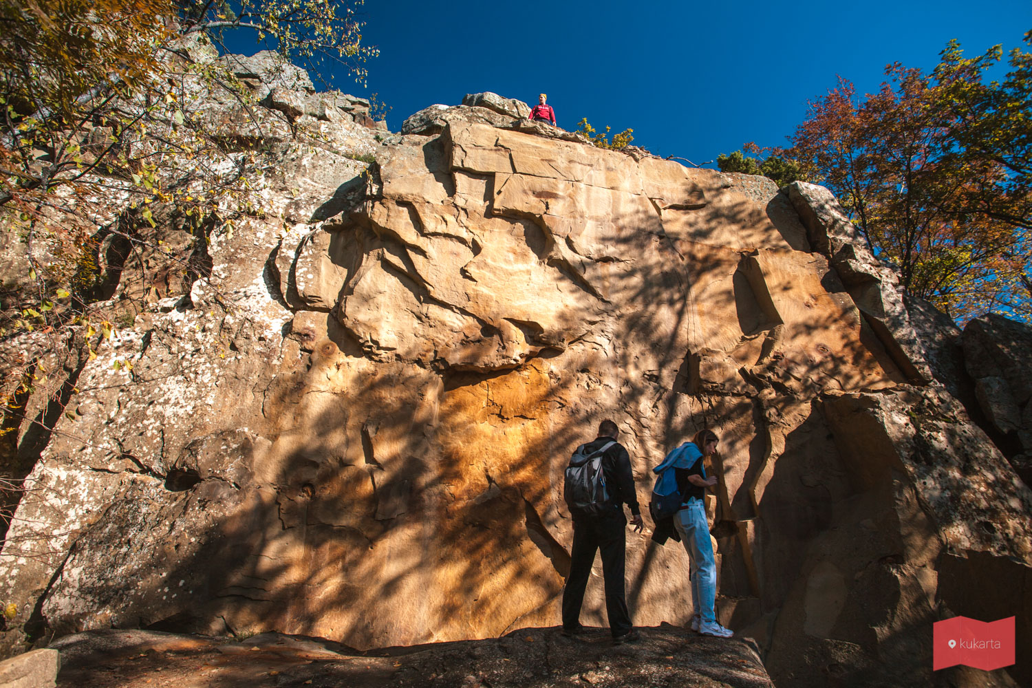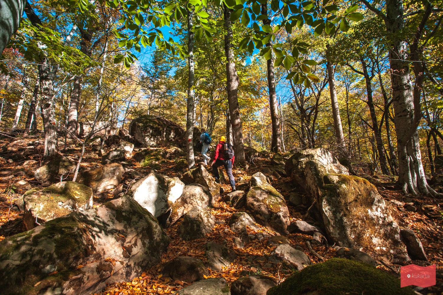 Оставшийся маршрут проходит по живописной части леса и выводит к подножию скал.