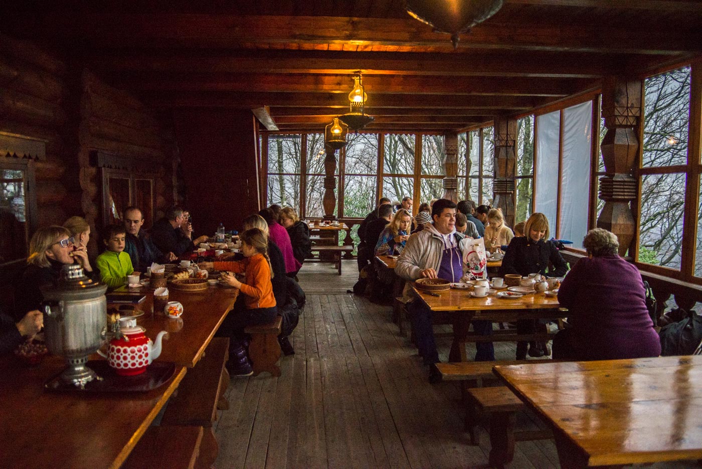 Объект интересен сам по себе, кроме того здесь подают вкусный чай из самовара, с пирогами, вареньем и орехами.