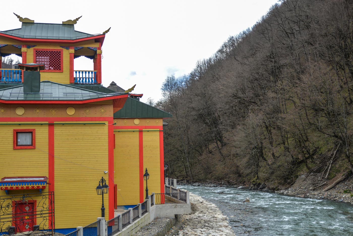 В “Мою Россию” можно попасть с железнодорожной станции Красной Поляны на автобусе, выбрав правильный маршрут. Автобусы бесплатные, вход в комплекс – так же бесплатный. Сам культурно-этнографический центр находится неподалёку от подъёмников “Роза Хутор 3S”.
