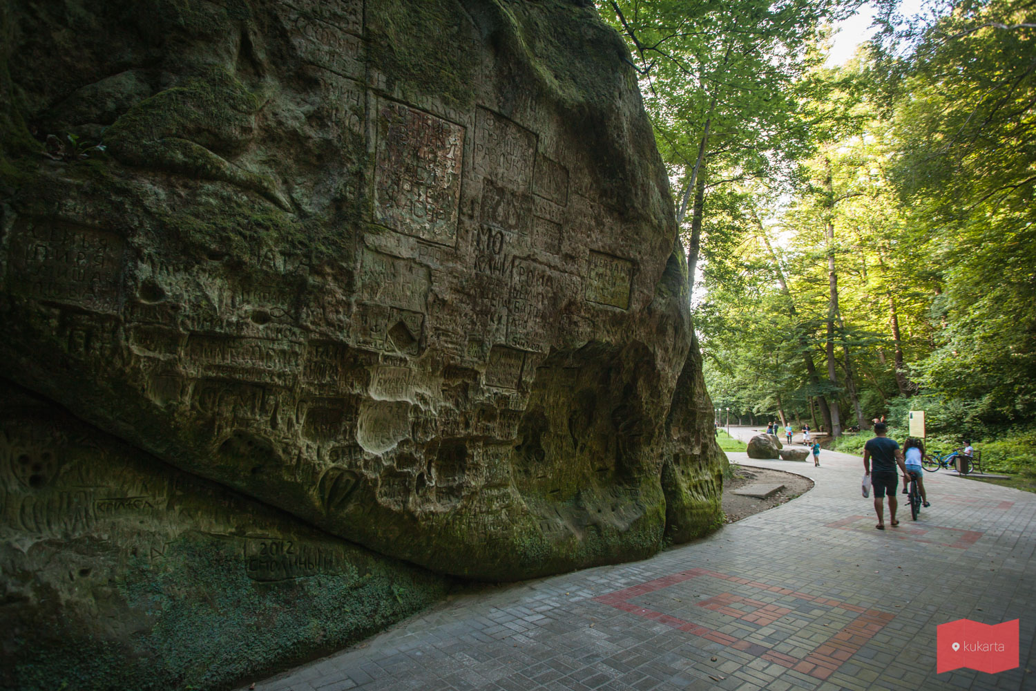 Именно здесь большие раскидистые деревья, дорожки проложенные сквозь лесной массив. Отсюда выход на достопримечательности парка – Дантово ущелье и вершину скалы Петушок.
