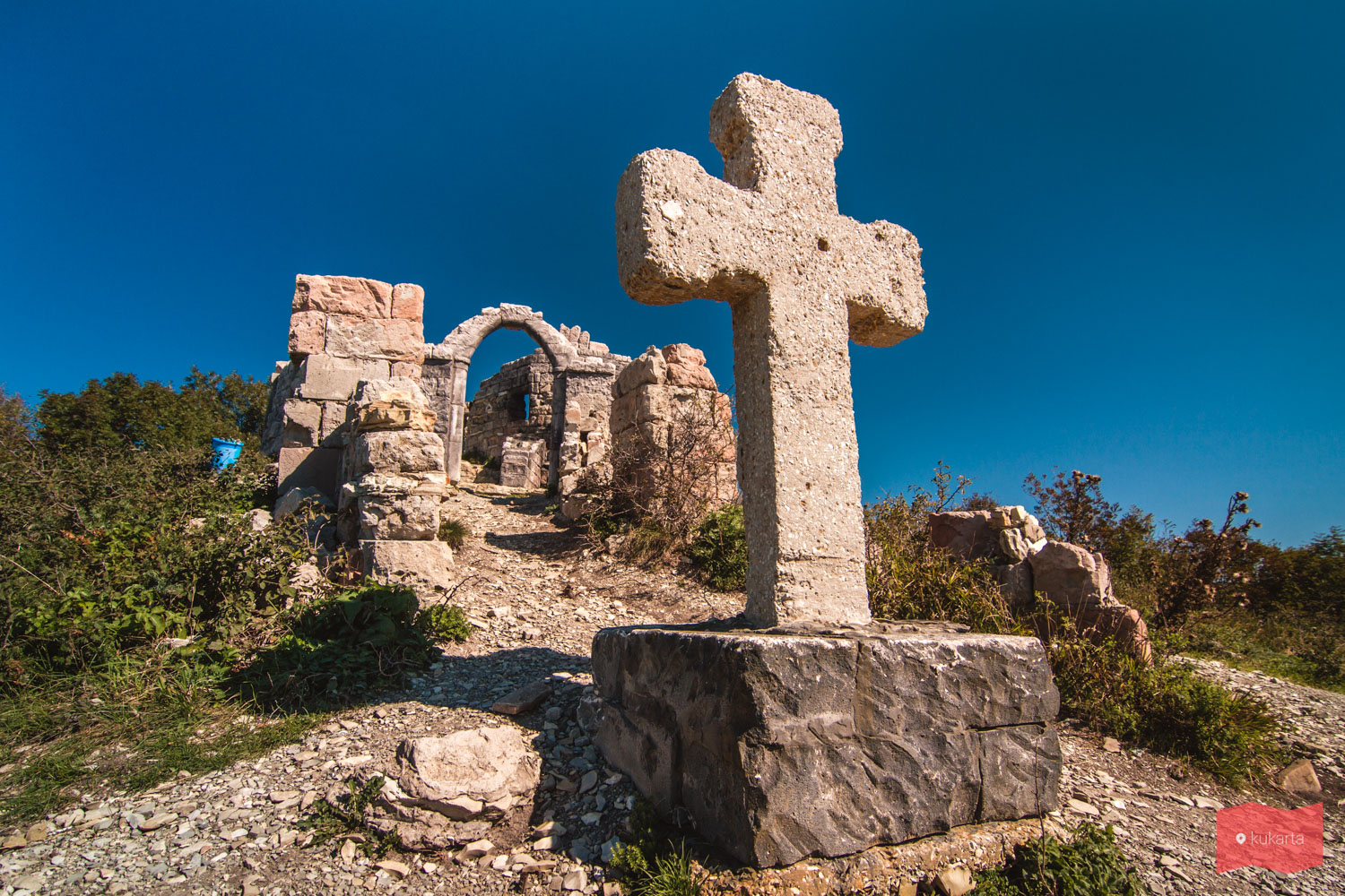 Эта локация расположена на горе Шахан. Когда-то здесь снимали фильм о Чеченской кампании и после съемок оставили декорации — бутафорскую крепость.