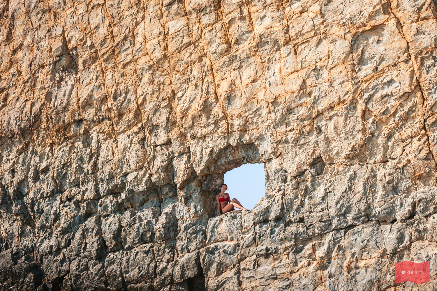 Фотогеничный пласт скалы высотой около 25 метров возвышается в море примерно в 10 метрах от берега. Название он получил за свою форму. В Парусе есть так называемое окошко — природа небольшого отверстия точно не установлена. Добраться к скале из Прасковеевки можно по берегу. Подробный маршрут описан в этой статье.