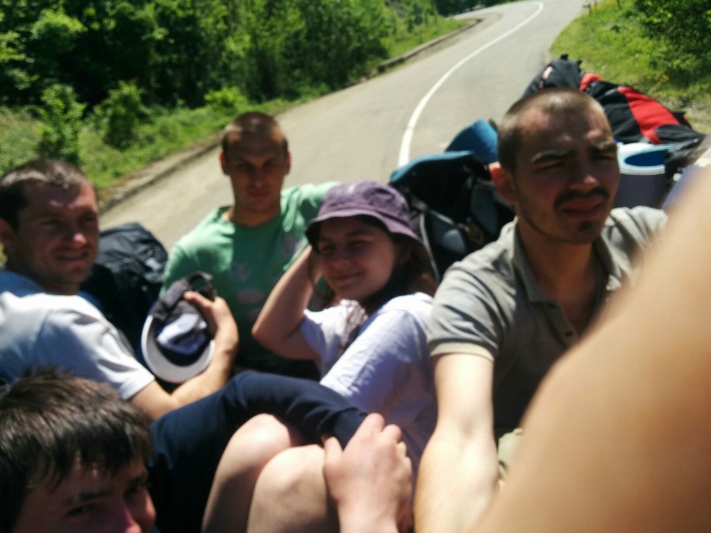 Оставалось около 2-х часов до электрички, но с общественным транспортом было не всё хорошо. Да и ехать приличное расстояние до станции. Благо у нас налажены коммуникативные навыки, нам не составило труда уговорить местного пасечника. Нашим транспортом был небольшой бортовой грузовичок, куда нас общим скопом и свалил водитель вместе с вещами.