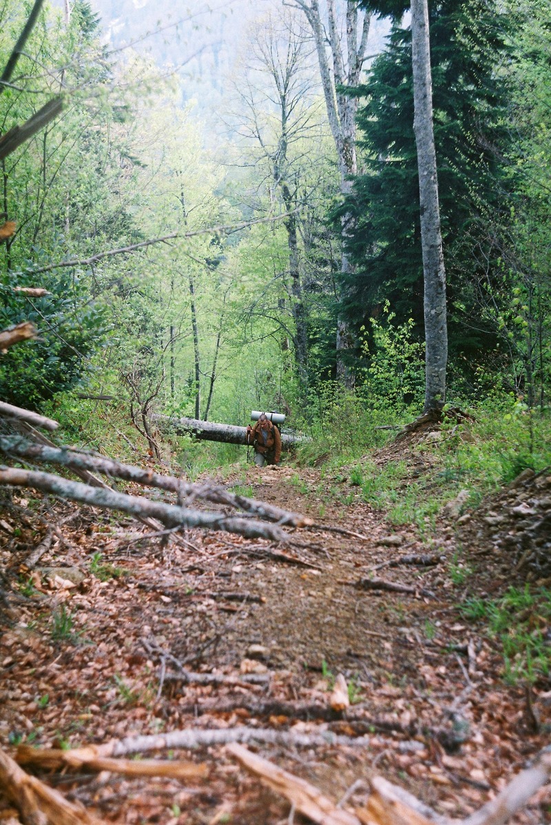 Утром выдвинулись. Путь лежал через горное полесье по старому, наверное, ещё советскому волоку вверх.