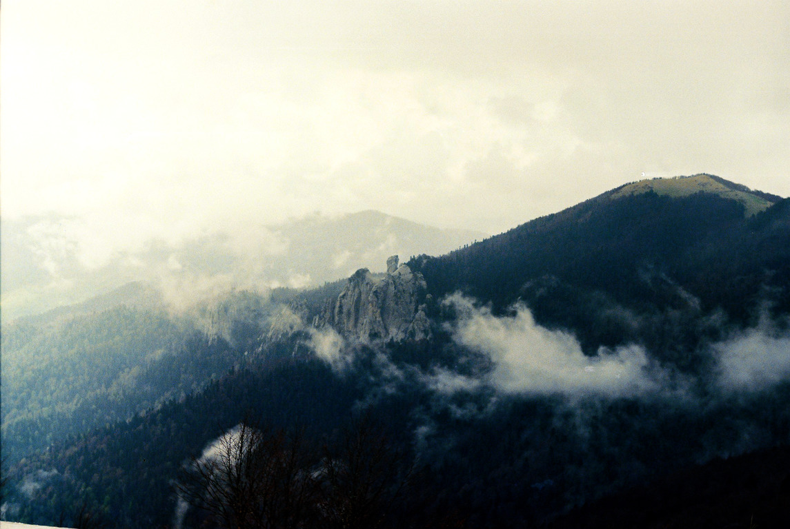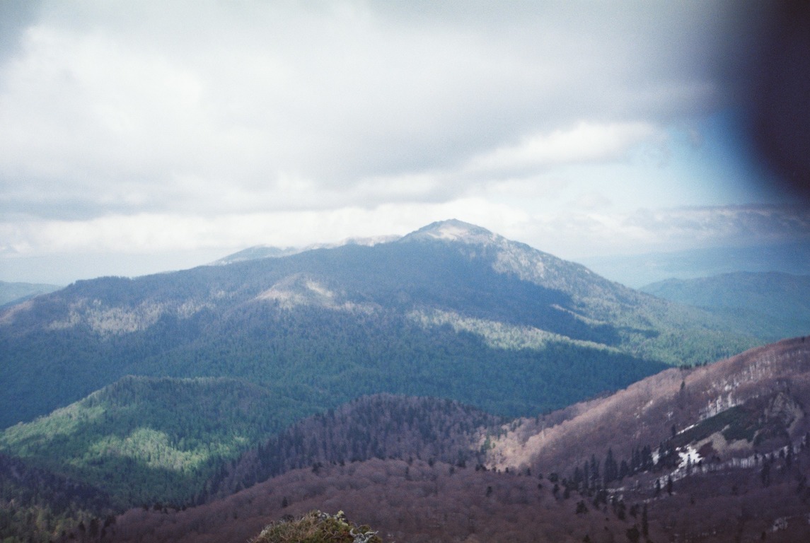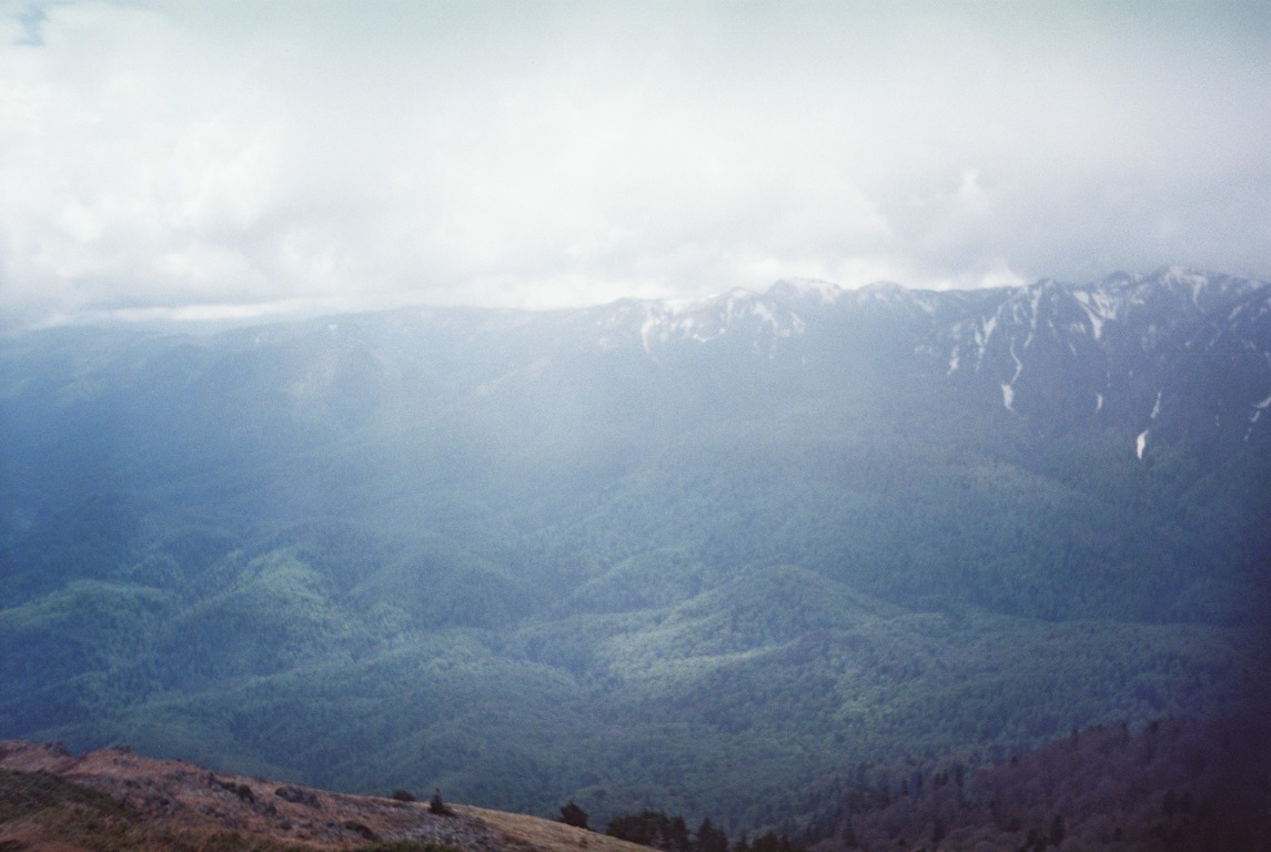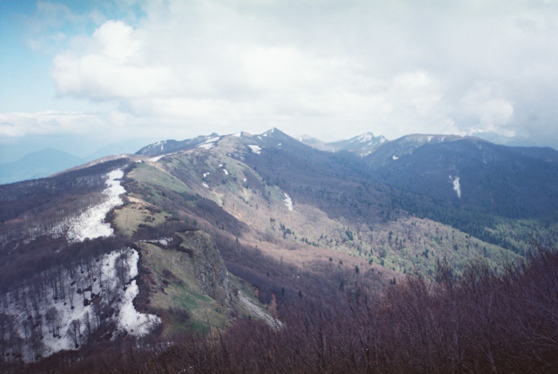Шли мы по вершине хребта, поднимаясь и опускаясь между горками комплекса Семиглавой. Высота меж ними варьируется от 1350 до 1455 метров. Вершины объяты субальпийскими лугами, при проходах по перемычкам между ними, попадались редколесья состоящие из бука и рябины. Попадалась и черника.