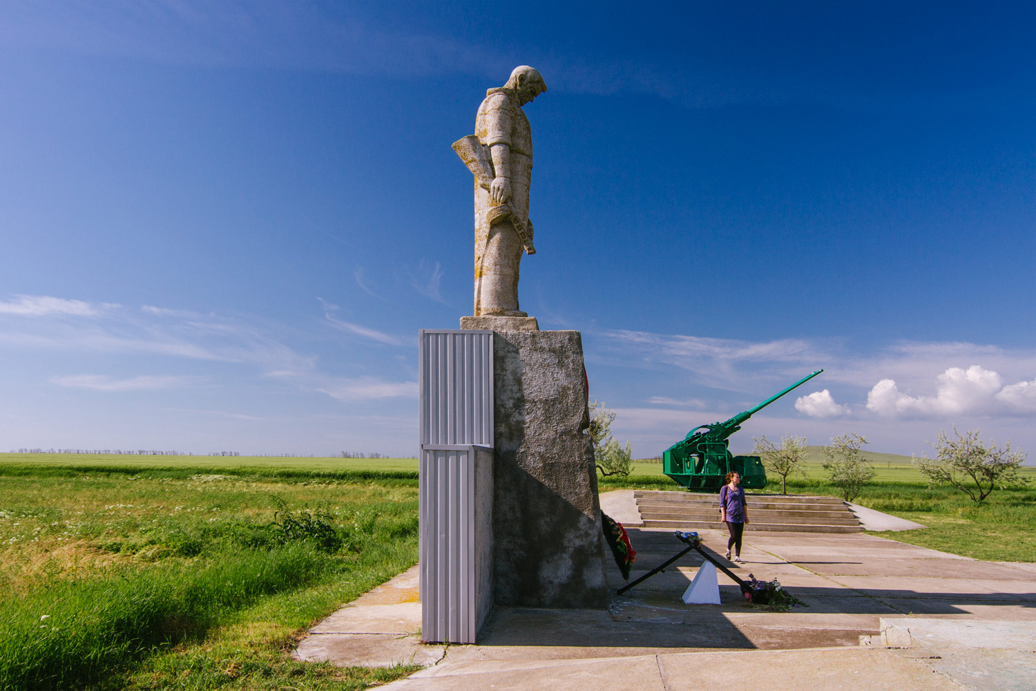 Когда все стихло, мы пошли к орудиям. Один солдатик как стоял возле пушки, так и погиб. Ему было 22 года. Фамилию помню: Пшеничный. Мы его схоронили, в могилу постелили солому, прикрыли его бушлатом. Потом стали приходить жители из станицы Запорожской, хутора Искра, чтобы хоронить наших солдат. В 1943 году немцы нас погнали в Крым — забрали со двора в чем стояли. Согнали всех на переправу, погрузили на баржи. Сами немцы спрятались в трюмы. Советские самолеты кружились над баржами, а мы вцепились в мамино платье и плакали. Потом — вагоны. На одной из станций нас высадили на платформу, и мы, прячась за деревья, сбежали. Пришли в какое-то селение. Там выдали нам по два килограмма муки на каждого. Мы работали в колхозе — выращивали табак.