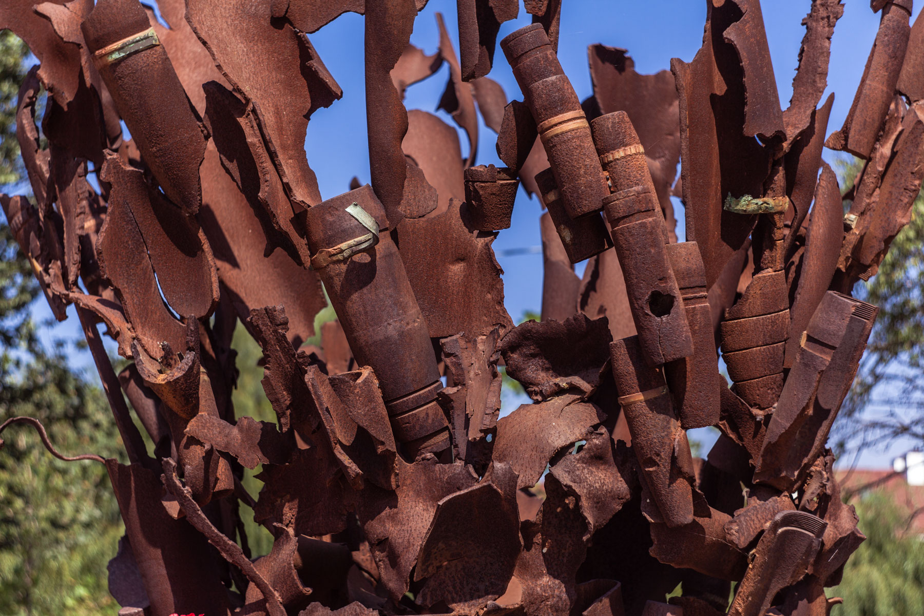Памятник «Взрыв» состоит из осколков снарядов, бомб, мин. Его вес составляет 1250 килограмм, именно столько было сброшенно на каждого советского солдата за время обороты.