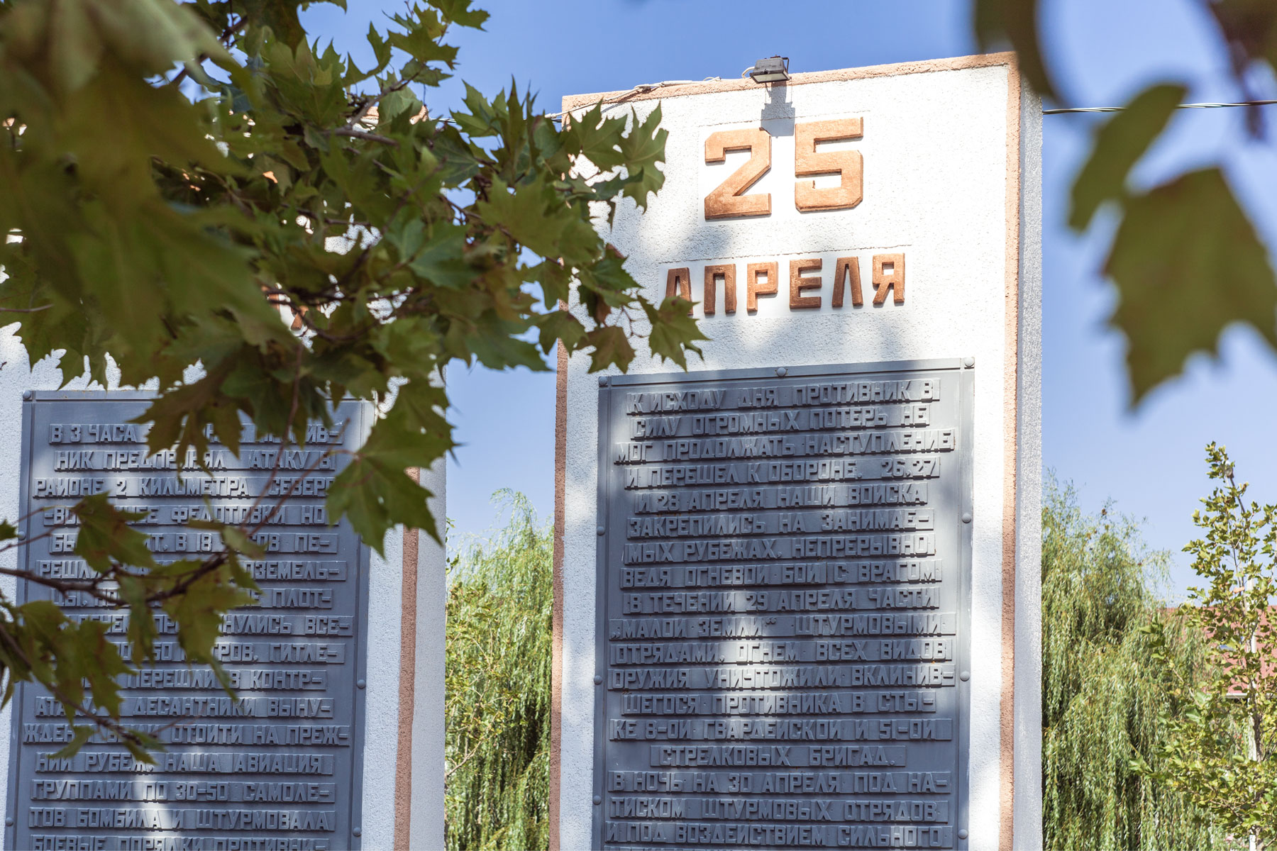 Мемориал переносит нас в 1943 год, напоминая о героической обороне советскими воинами маленького плацдарма площадью 30 кв. километров, названного Малой Землей. 7 месяцев фашистские самолеты и пушки обстреливали этот небольшой кусок земли, на котором не осталось ни метра площади, куда бы не упал снаряд или бомба.