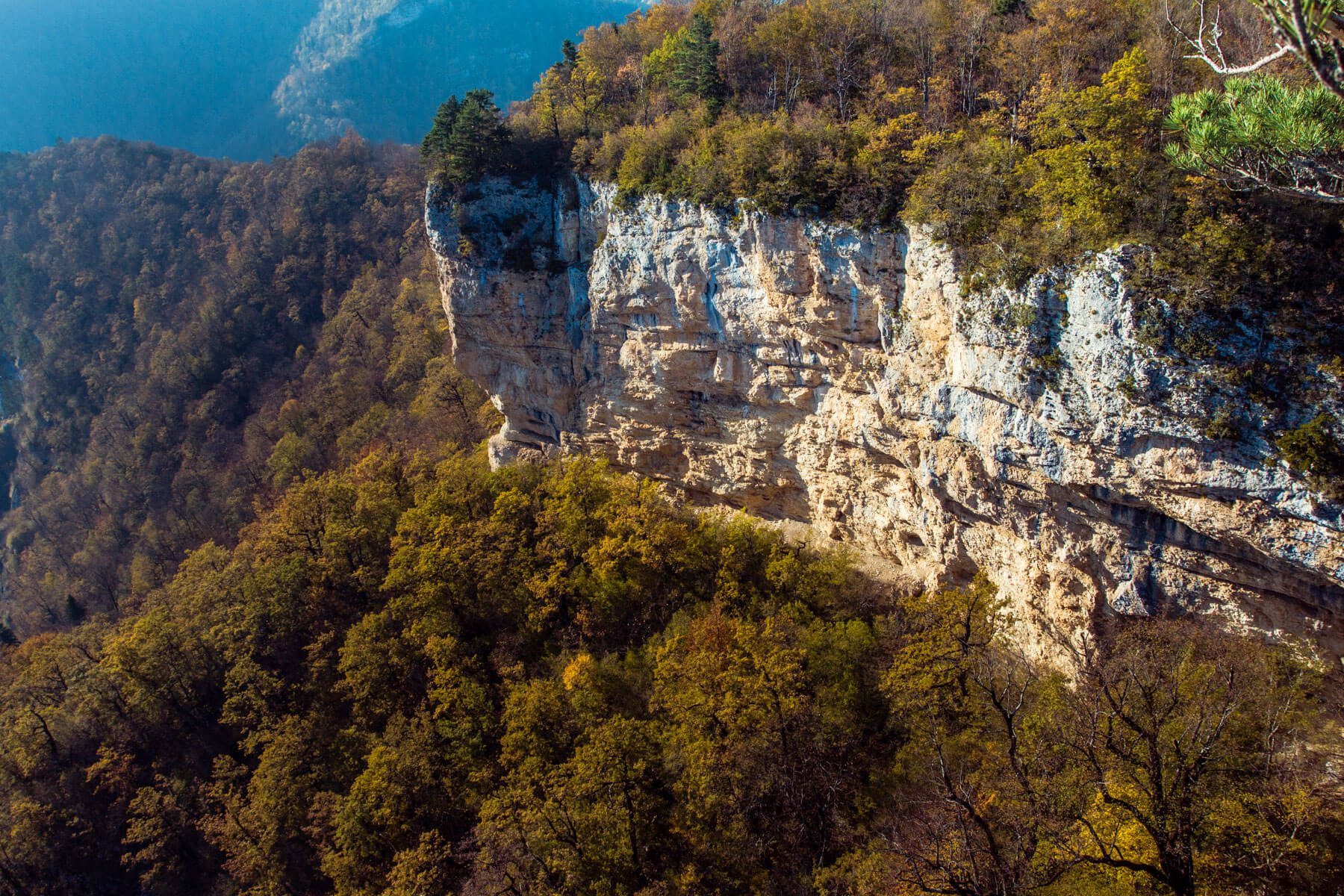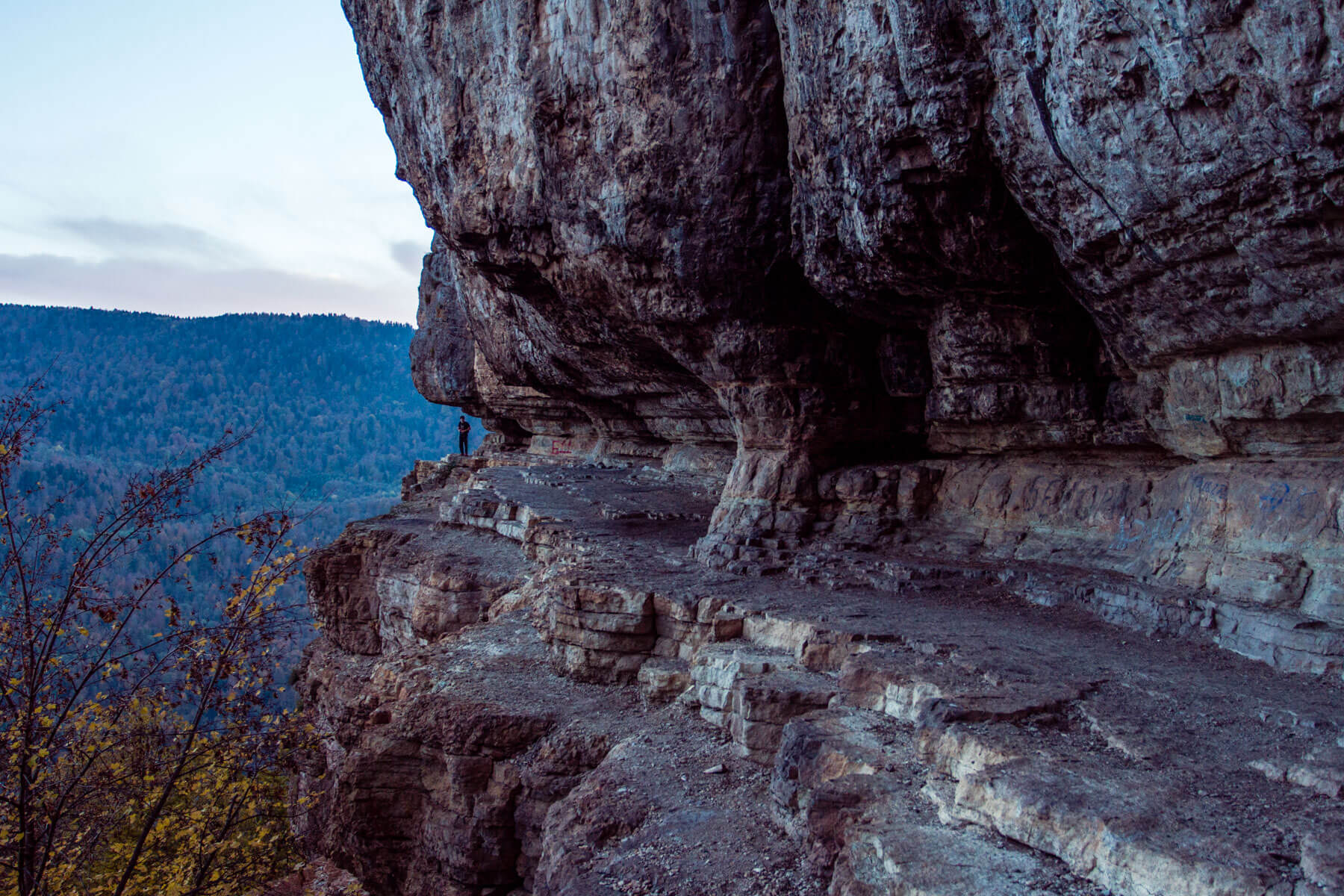 Основная ценность маршрута – это смотровые площадки. Их несколько штук, но значимых – 3. Первая из низ называется – «Михайловский камень», на наш взгляд она проигрывает другим по зрелищности. Возможно стоящая дымка испортила впечатление. Из ее плюсов – она невероятно доступна, даже если не хочется идти дальше по маршруту, можно забежать только на нее и поехать дальше в Мезмай, от дороги 15-20 минут неспешной хотьбы.