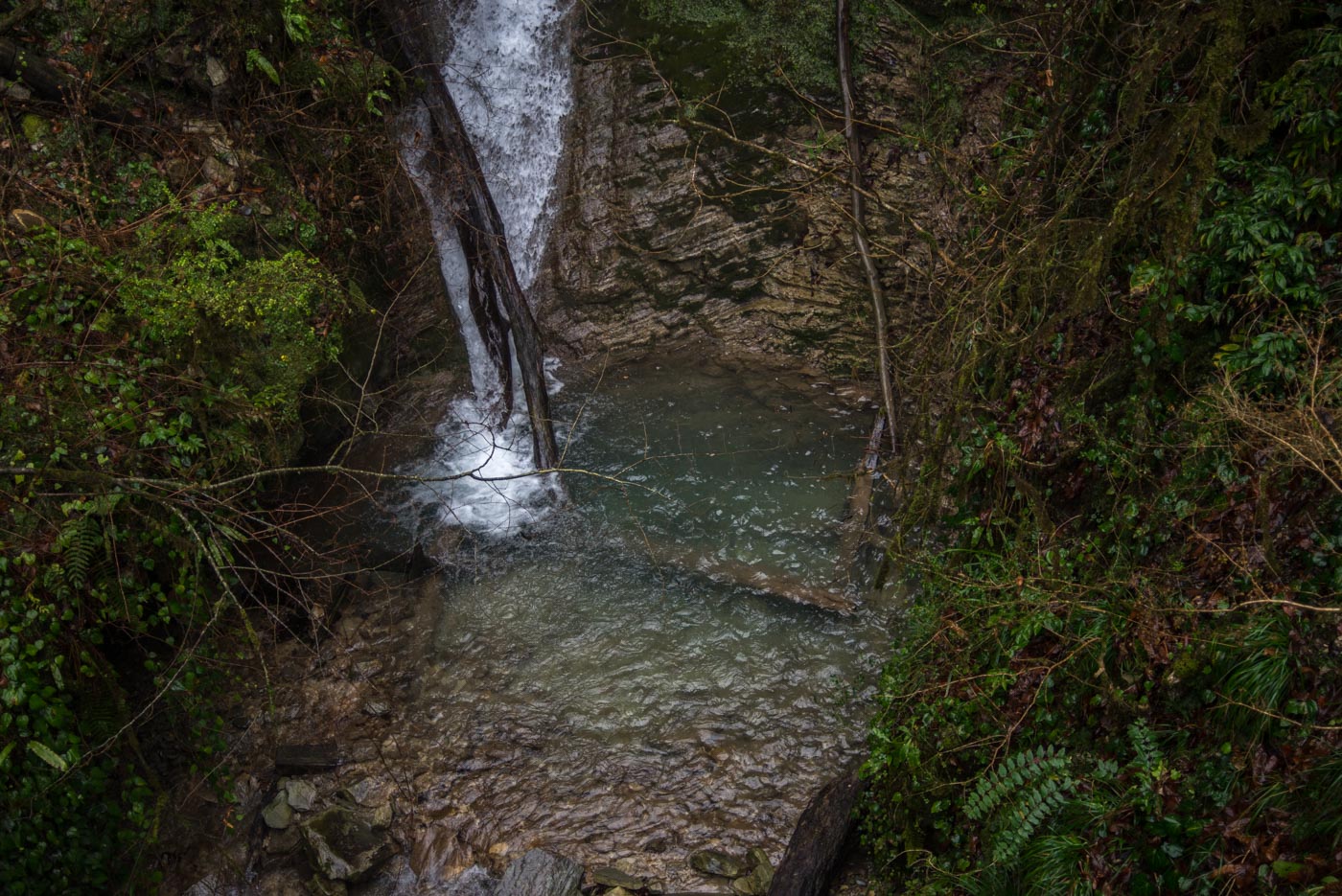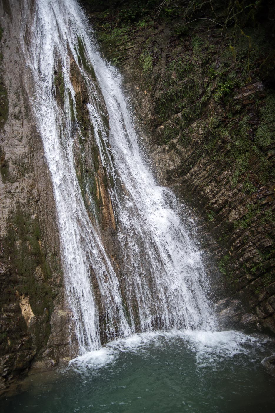 Находится недалеко от поселка Солохаул – родины российского чая. Состоит из нескольких каскадов, разделенных небольшой чашей, где можно искупаться. Водопад расположен прям возле грунтовой дороги, которая ведет из поселка в горы: к чайным плантациям и местам лесозаготовок. Дорожное покрытие хорошее, можно доехать даже на городском автомобиле.