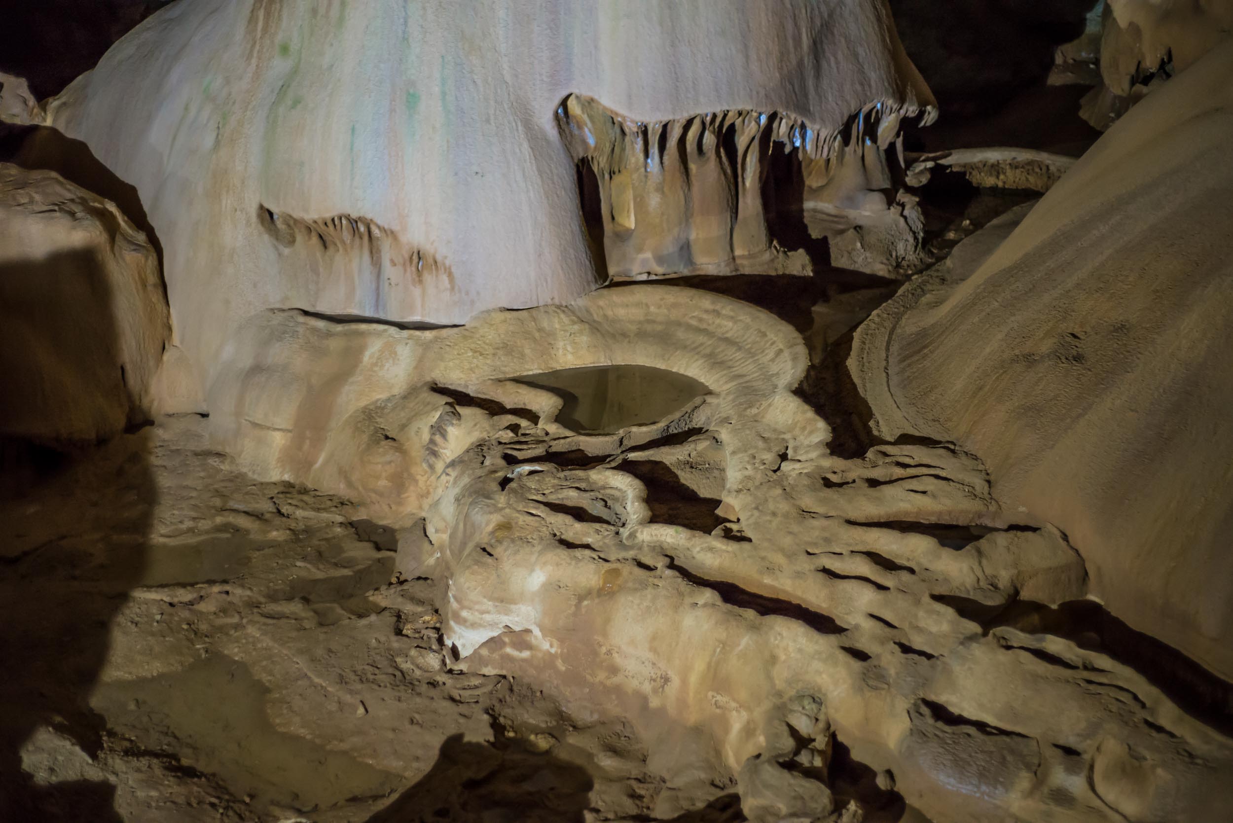 В этом зале туристический маршрут заканчивается. Дворцовым он был назван потому, что в глубине есть два огромных сталактита, в которых при наличие воображения можно разглядеть короля и королеву. За этим залом следует Глиняный, но сюда экскурсии уже не проводятся. Чтобы продолжить осмотр пещеры, туристам предлагают вернуться обратно до Галереи Сказок.